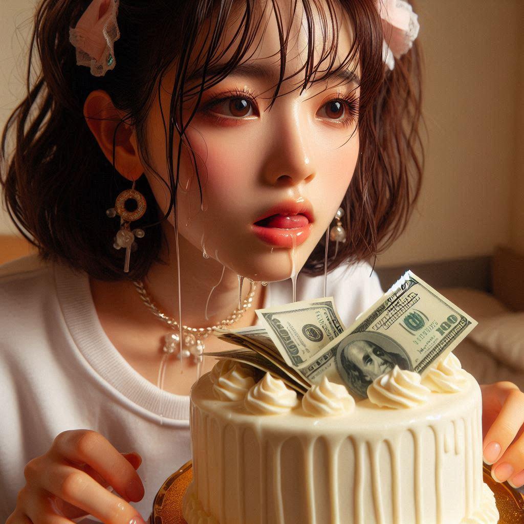 ケーキなんてどうでもいいから、早くドル札を私に食べさせて…