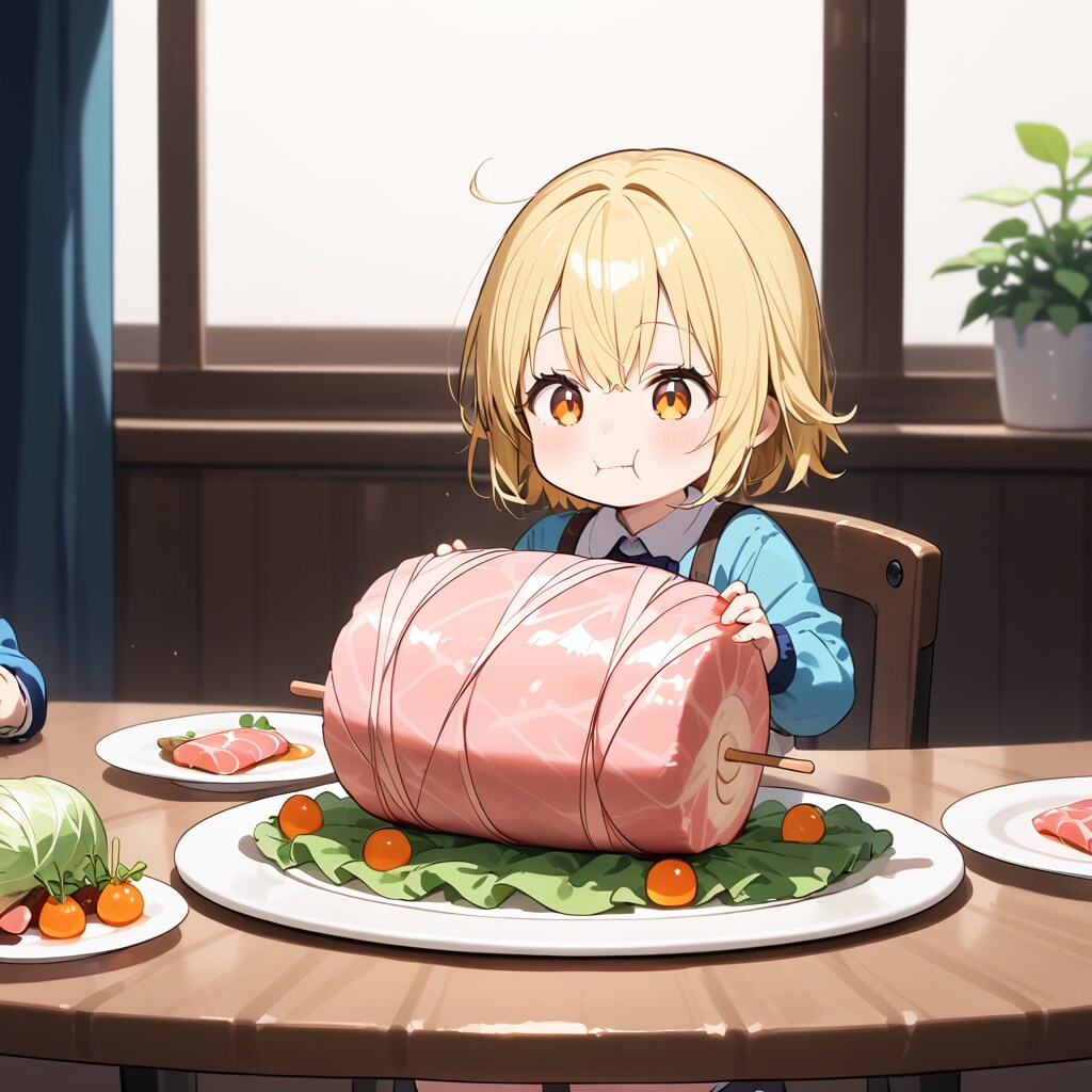 二枚目、いよいよ食べて貰おうかな。かいわれをハムで巻いて食べている、にしたら…こんなん出たw