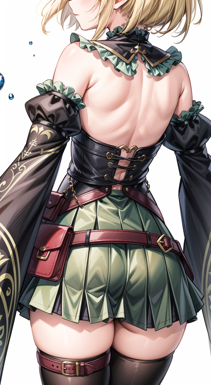 背中:マントで隠れてたりしますが、結構大胆に開いたデザイン。これについてはあまり意図はしていなかったのですが、おおよそいつものプロンプトで生成するとこのようなデザインになるので公式採用しています。