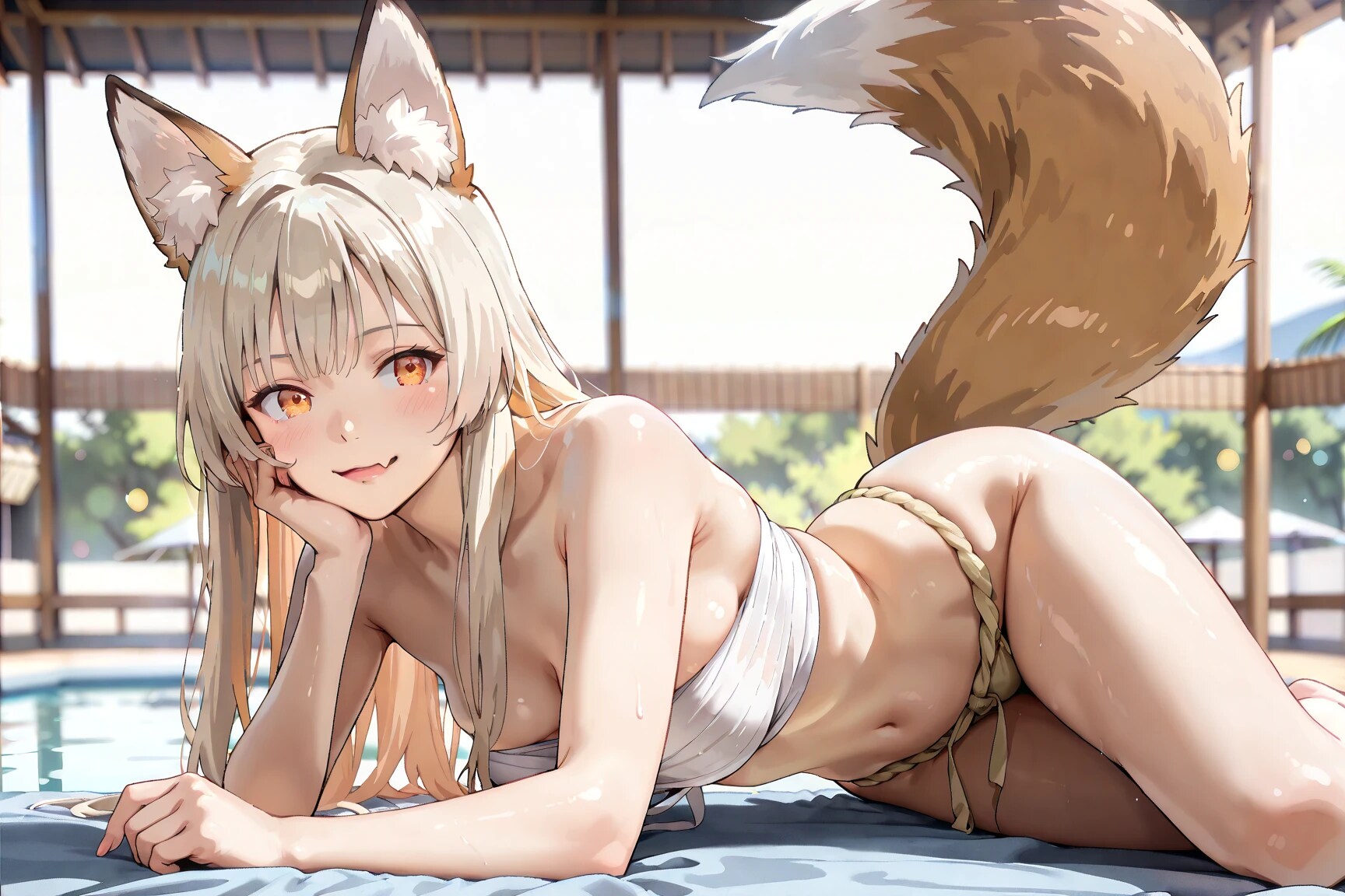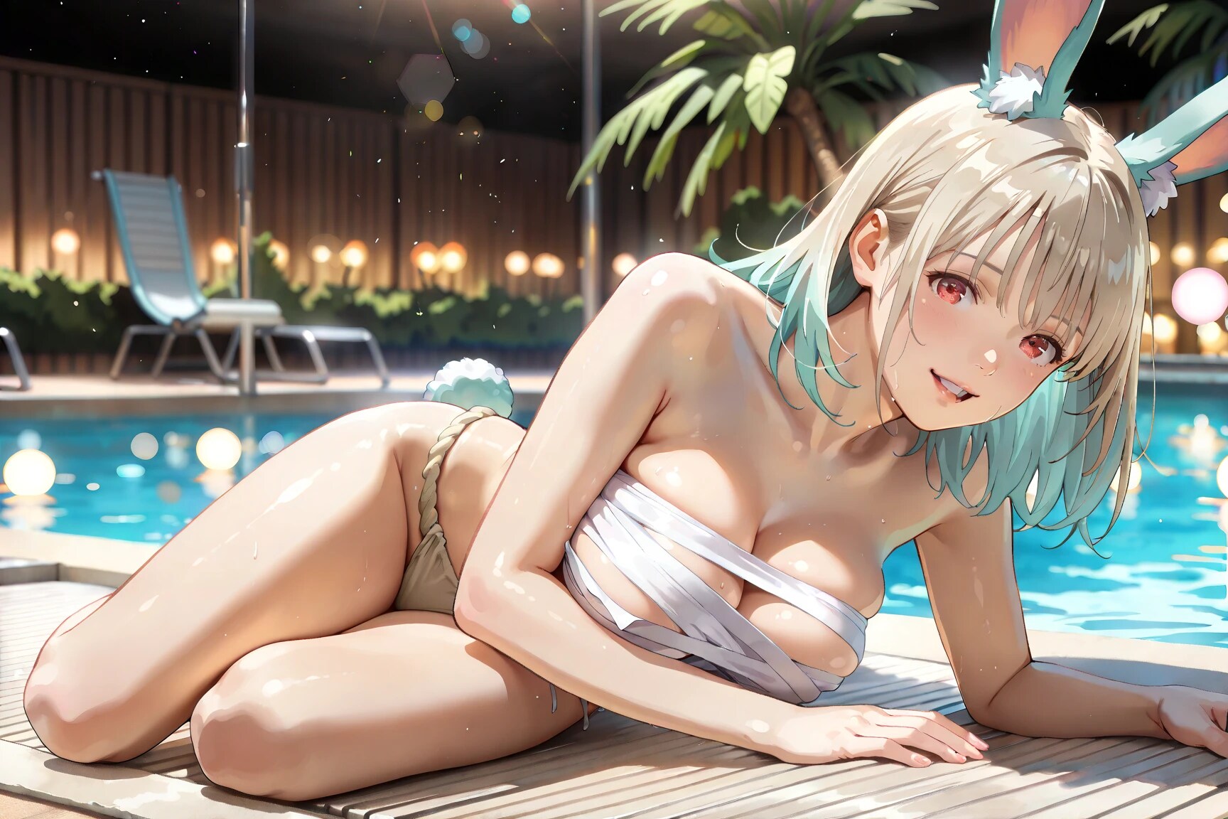 もはや、ビキニではなく、ベージュの"さらし"と"ふんどし"