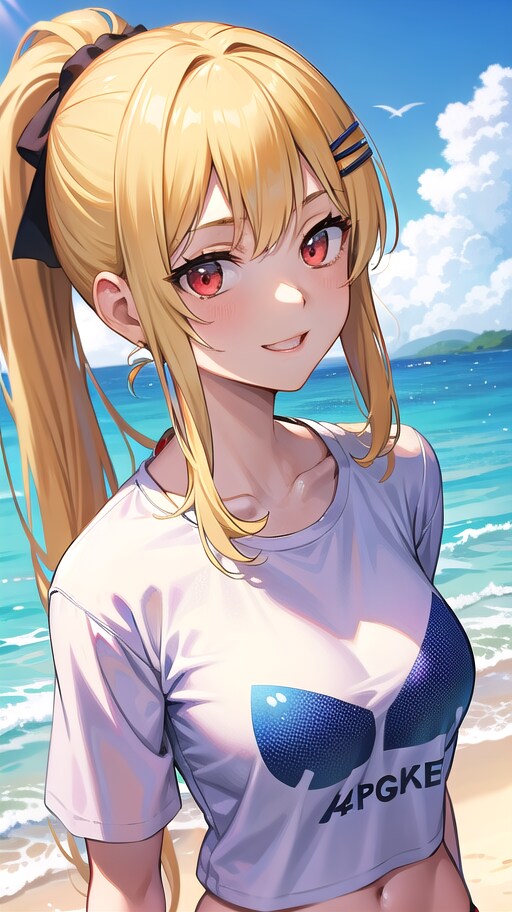 要求的にちょっと難しいかなと思ったけど、ビキニを着ているように見えるTシャツを出そうとしてみたらやっぱり難しかったもよう…