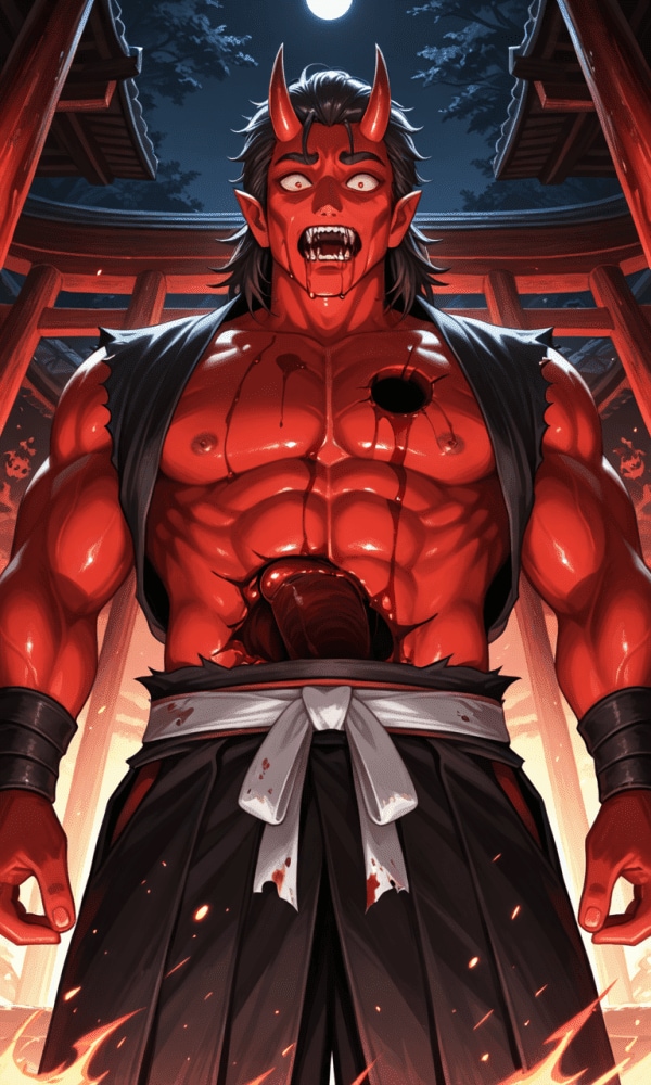 辞退を悟った鬼は、苦痛の表情のまま歪んだ笑みを浮かべる。
