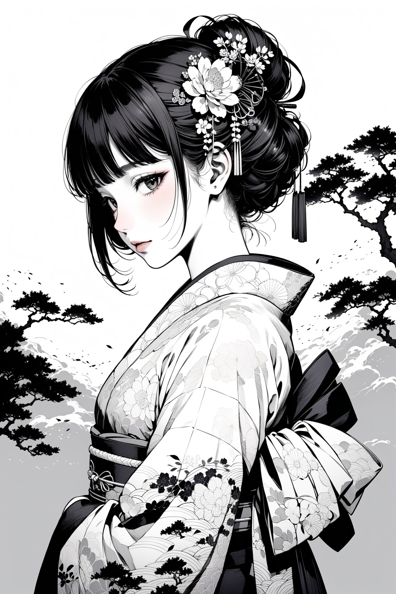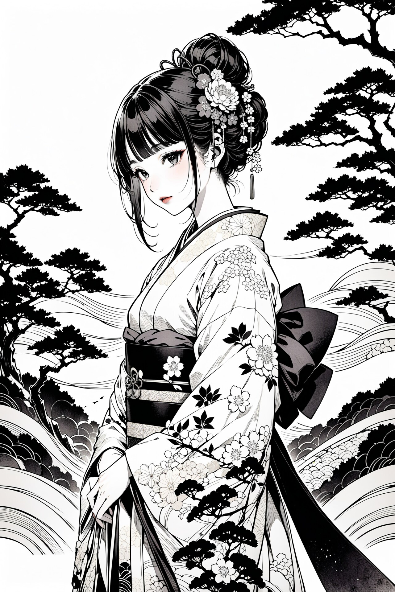 紅白ということで薄紅を引いた白い着物のおねいさんです。