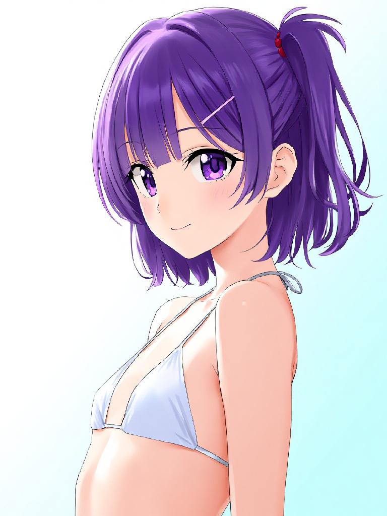 紫の瞳、スリムでフラットチェスト(成長余地あり)