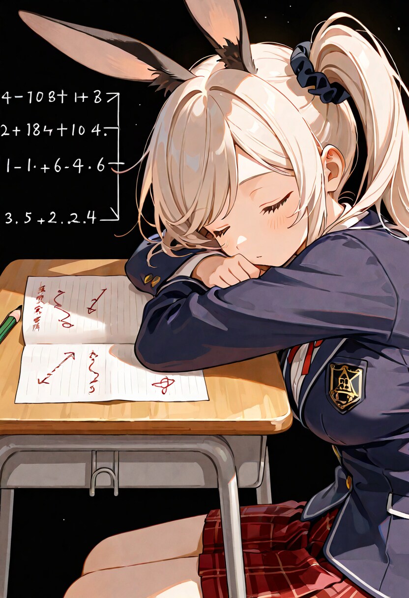 数学が苦手な如月ちゃん。あまりの難しさに寝落ちしてしまった。