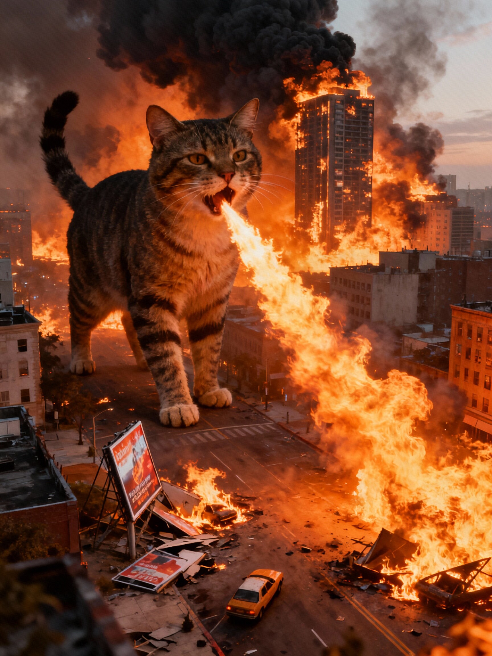 1.口から火を吐き都市を焼き尽くす巨大な猫