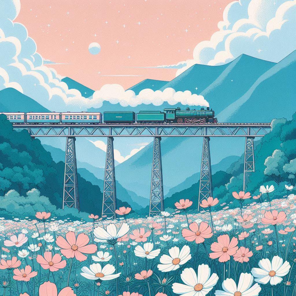 コスモス畑と鉄橋