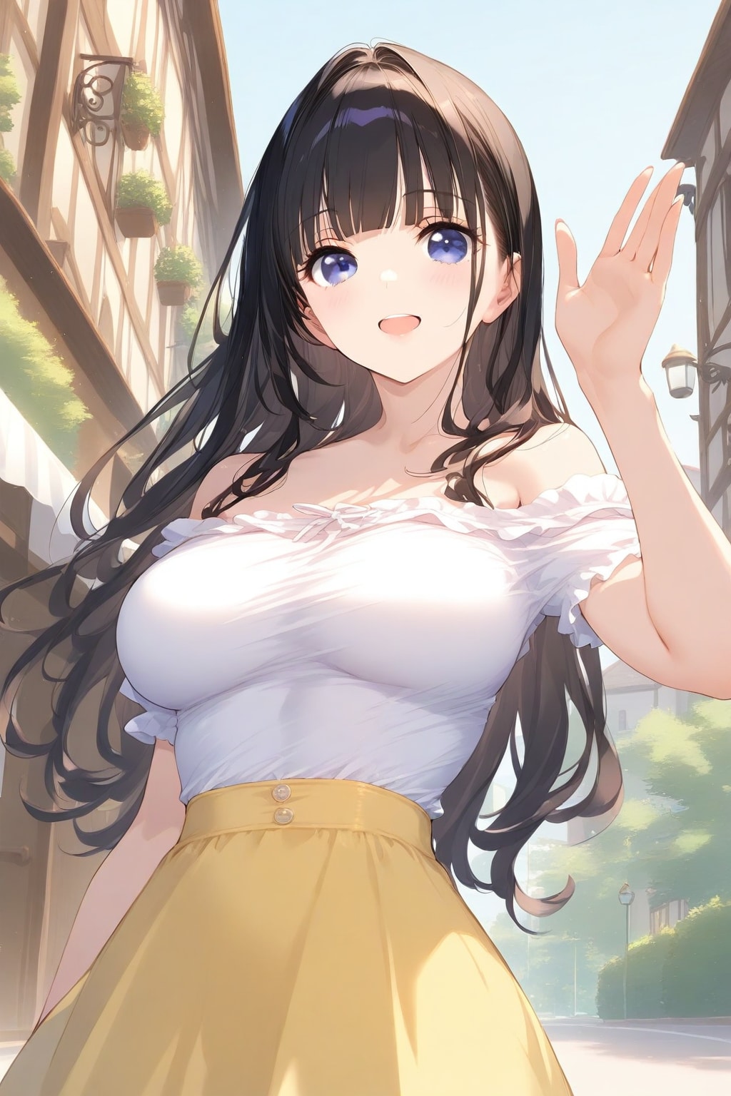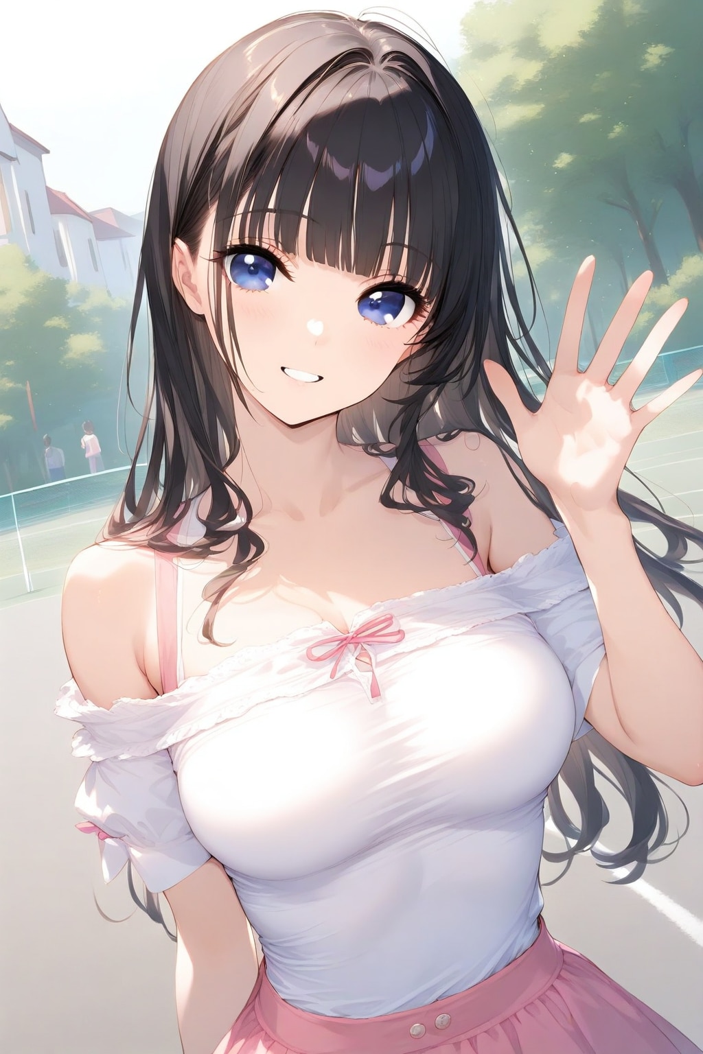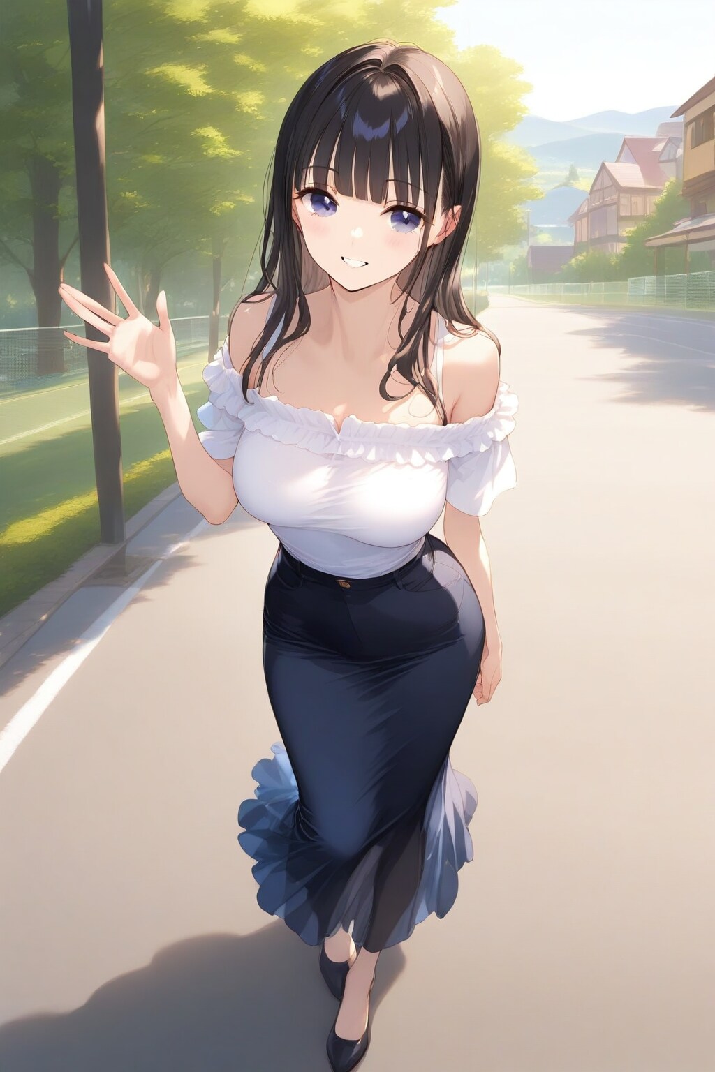 今日のちちぷい生成はWAVEでうちのサキちゃんの肩出しロンスカ姿!