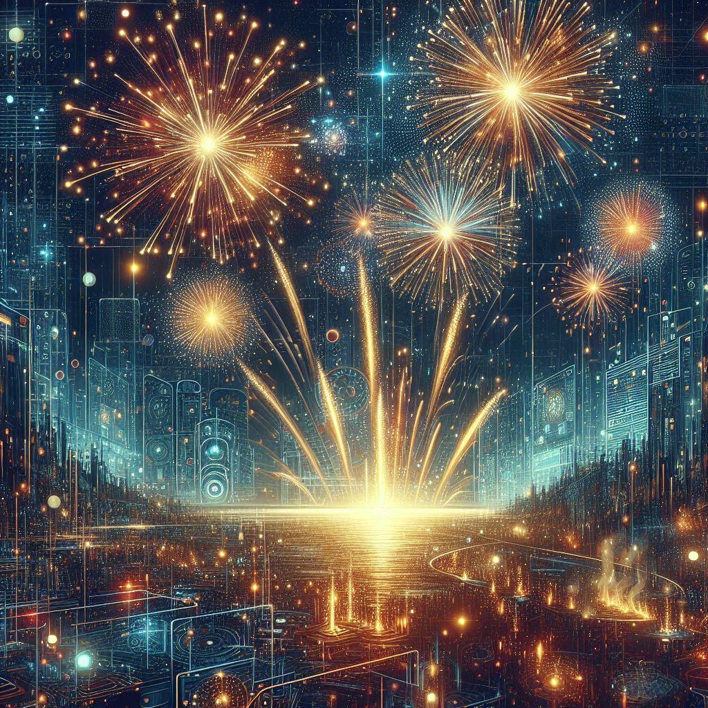 プロンプト:花火大会をデジタルアートスタイルのイラストで表現してください。