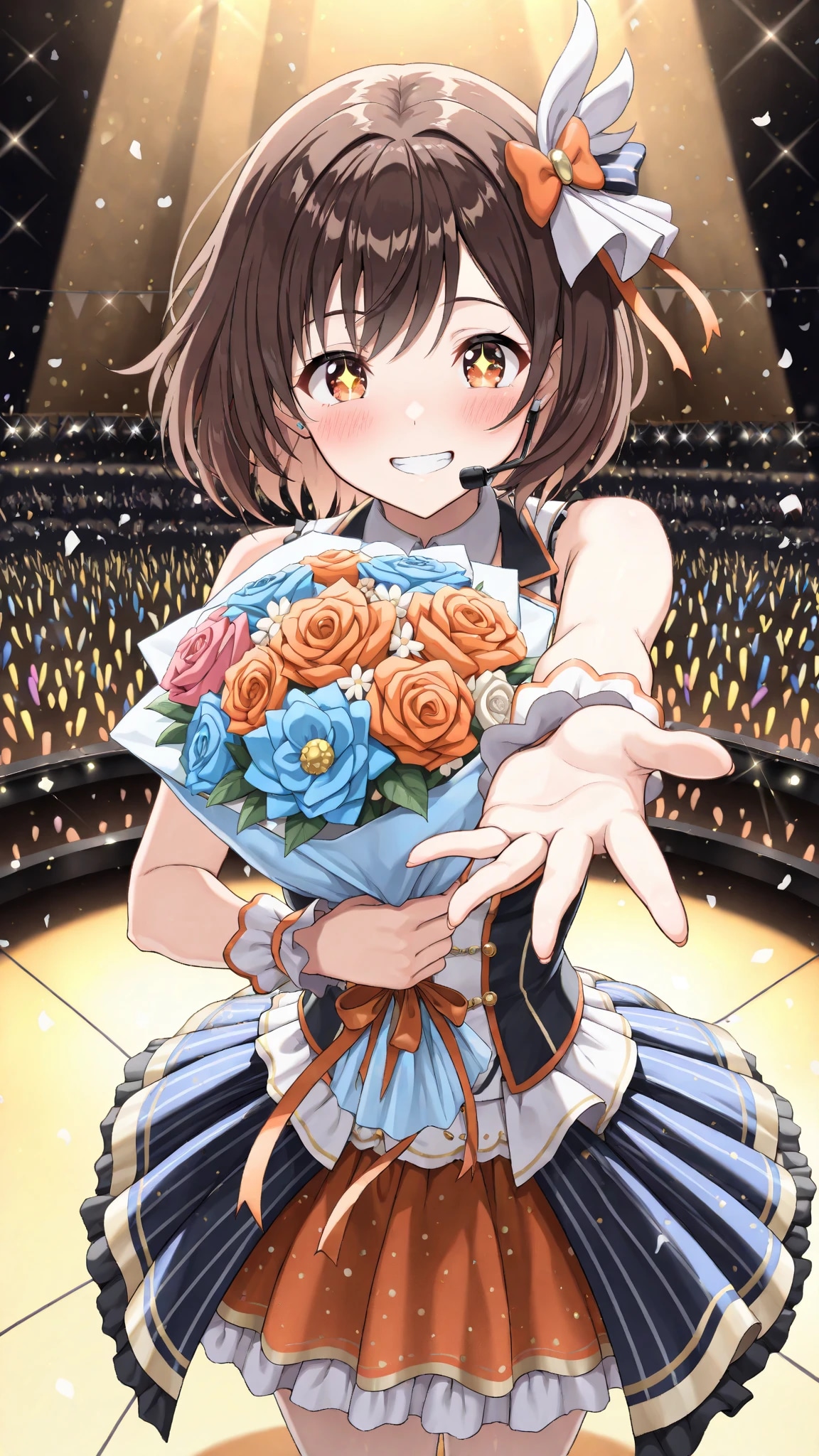 (20yo, dark brown hair:1.2), orange eyes, short hair,