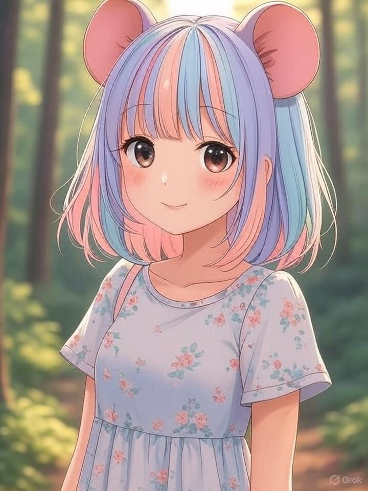 プロンプト⇨ねずみ耳が生えたかわいい女の子を生成してください。アニメ調のイラストです