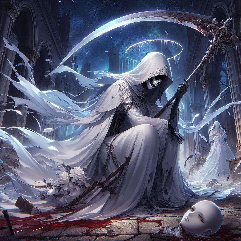 2枚目は、とある条件を満たすことによって発生する裏ボス・断罪のアムリシア。顔全体を白いドクロの仮面で覆われている。