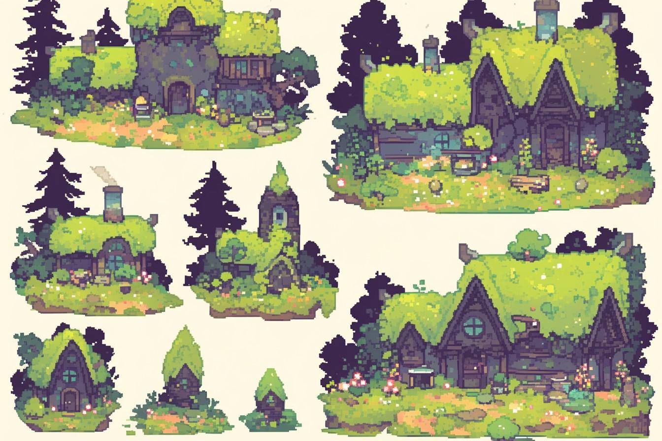 ファンタジー村も作りたかったのですが、なぜかマップチップ風になってしまって、純粋な村は作れず…