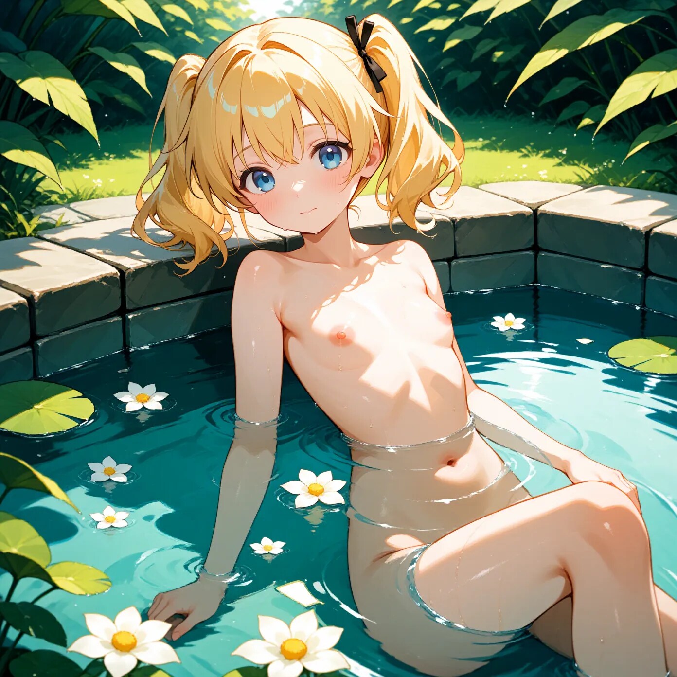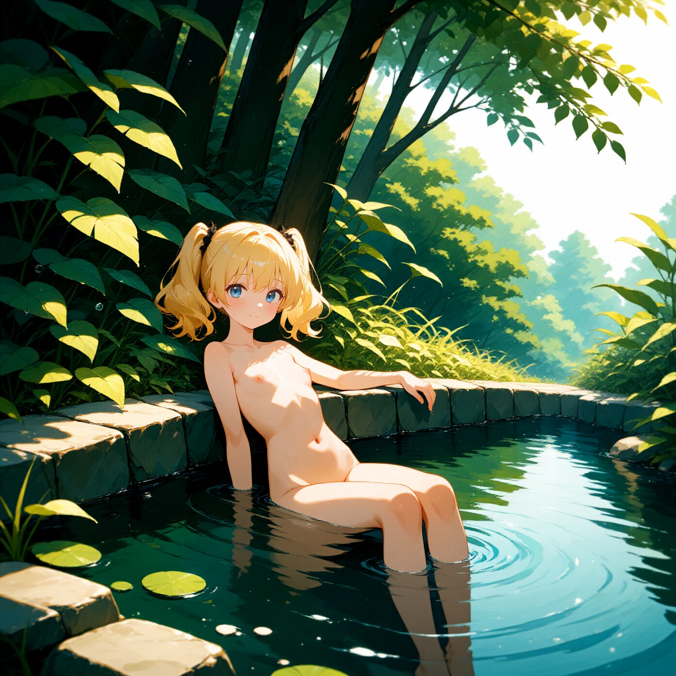 大地に抱かれつつ湯に浸かる少女