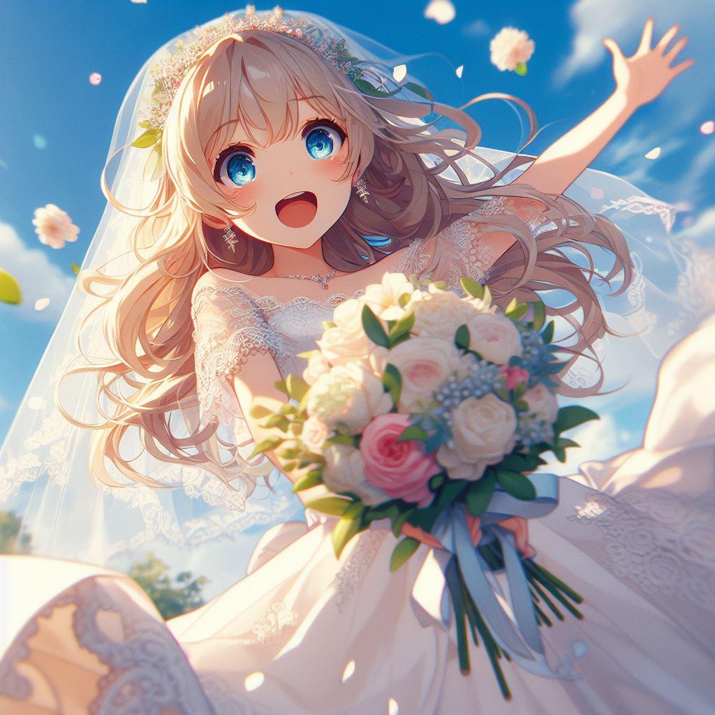 青空を舞うブーケ。誰の手におさまるのでしょうね。