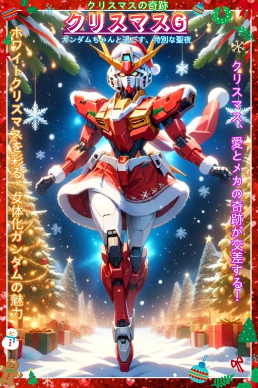 アキラは冬休みに入った週末、友人たちと過ごす予定が全てキャンセルになってしまった。彼は一人で過ごすクリスマスを考えながら、ふと目を閉じた。すると、目の前に光り輝く姿が現れた。それは、彼が大好きなガンダムが女体化した「ガンダムちゃん」だった。