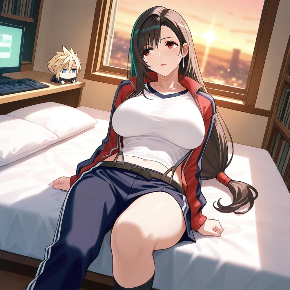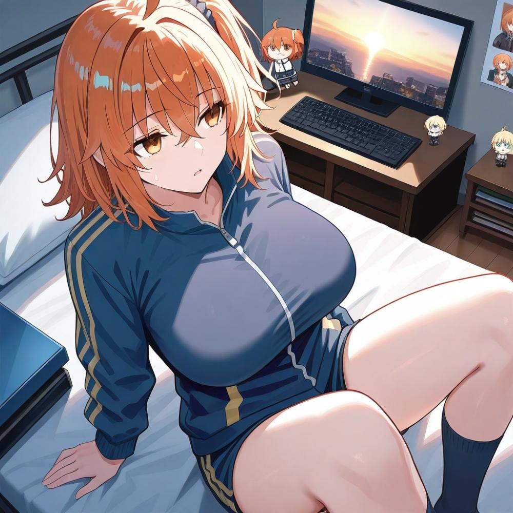 アニメ風汚部屋のサイドテールジャージ部人妻達