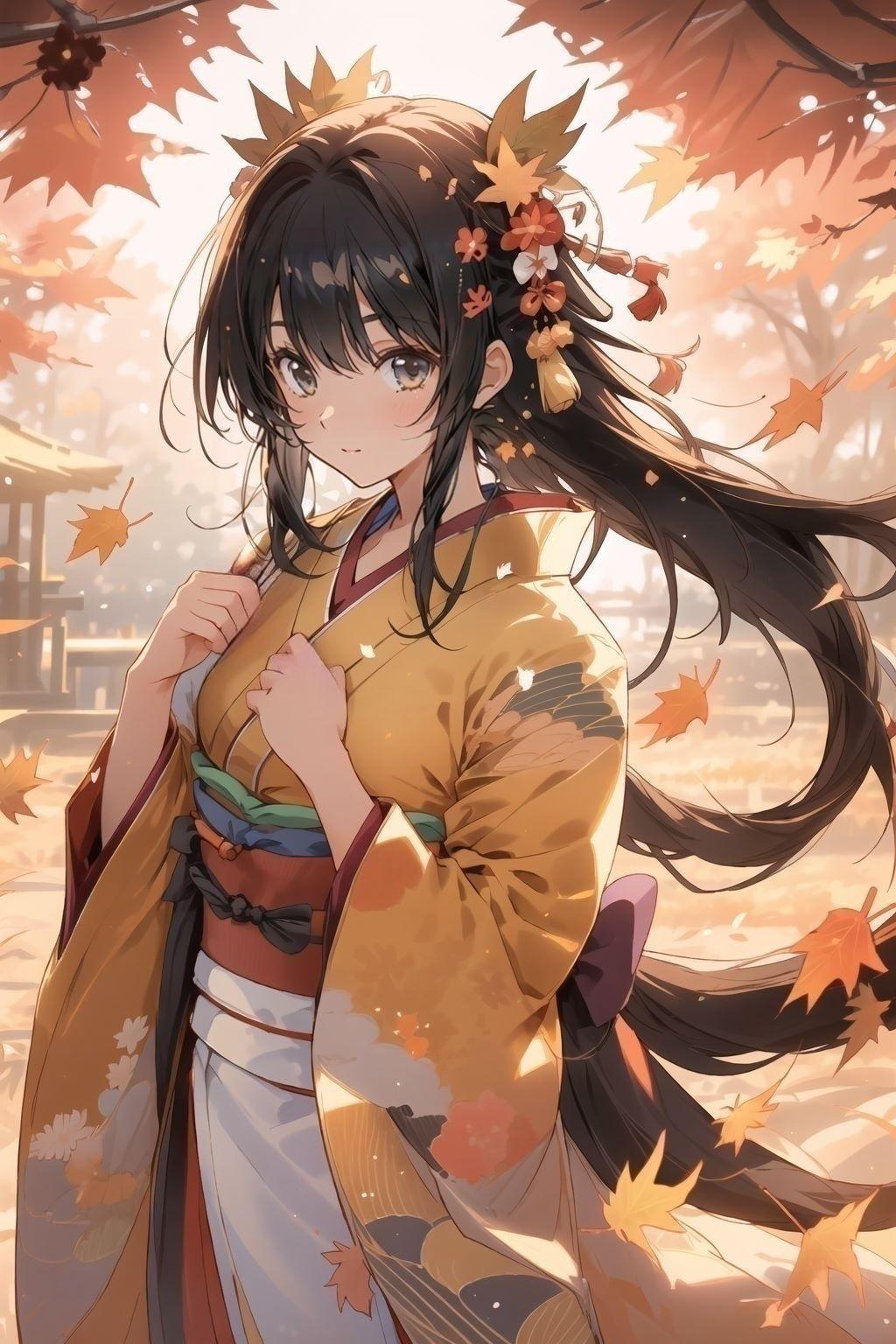 女神さまの1人。黒髪ロングに橙系の和服と髪飾りが特徴です。