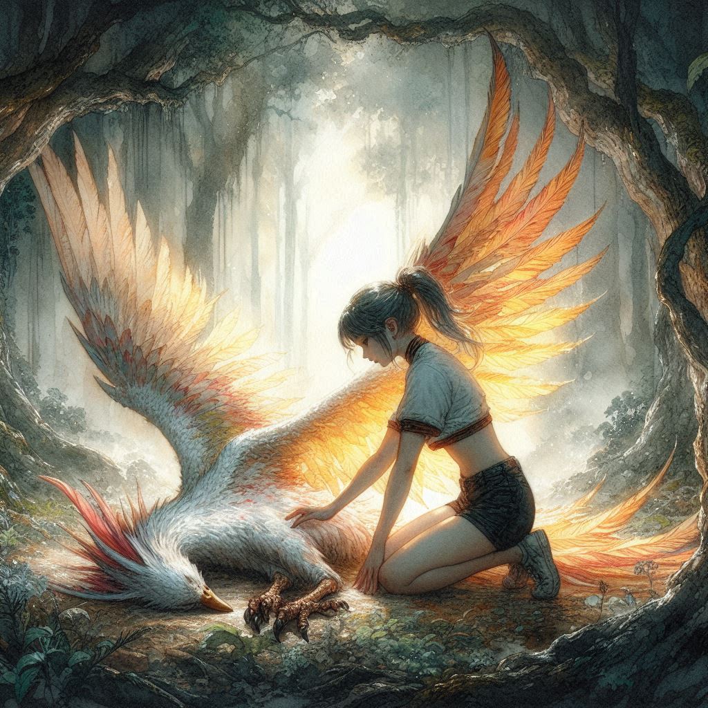 戦火に焼かれる村をフェニックスが救ってくれたのだが、フェニックスにやられたと勘違いされ、フェニックスをけしかけたのは少女と決めつけられ、帰る場を失った