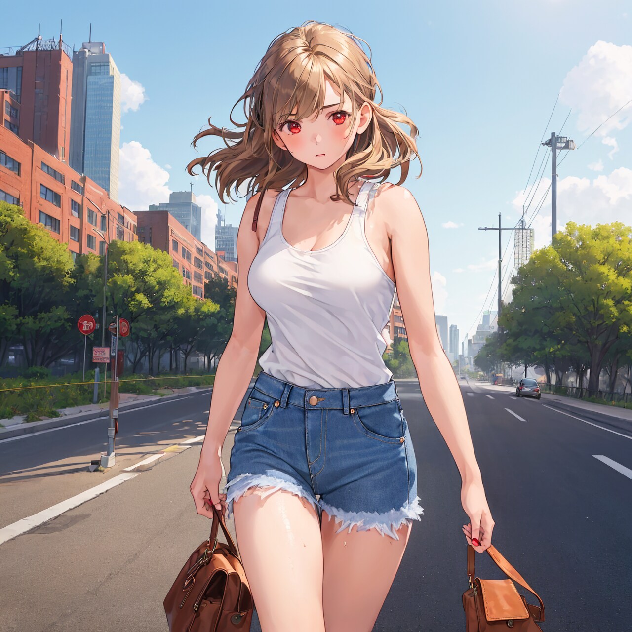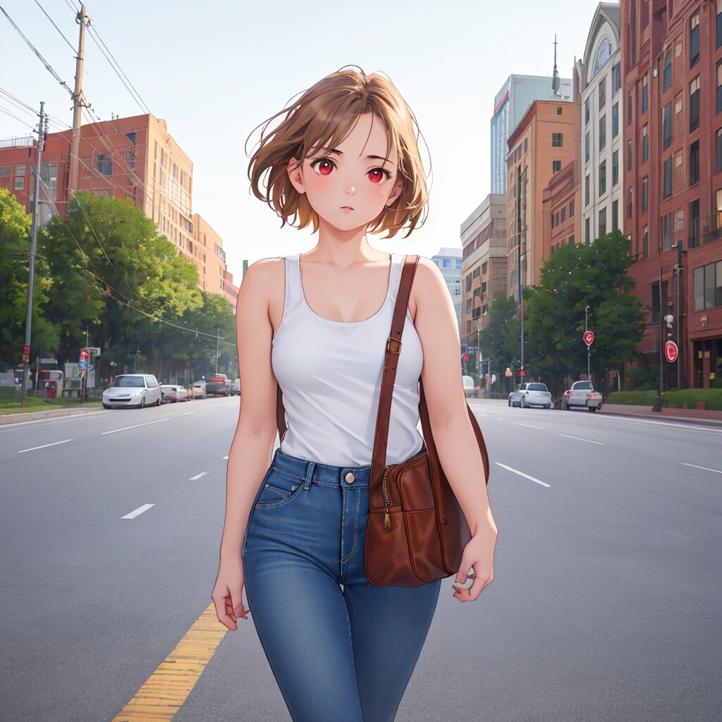 ブルージーンズと白いタンクトップを着た女性、好きです。