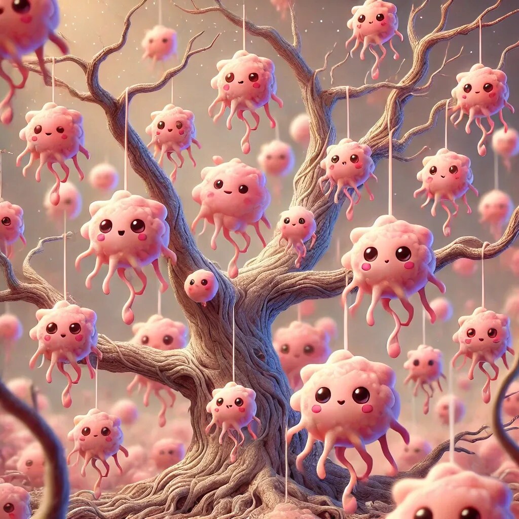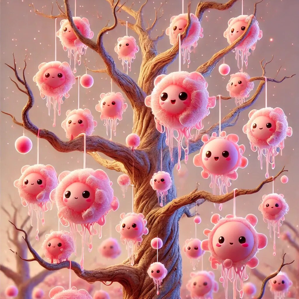 まるで不思議な果実が実っているかのようで、ユーモアとファンタジーが融合したシーンになっています。😊🌳✨