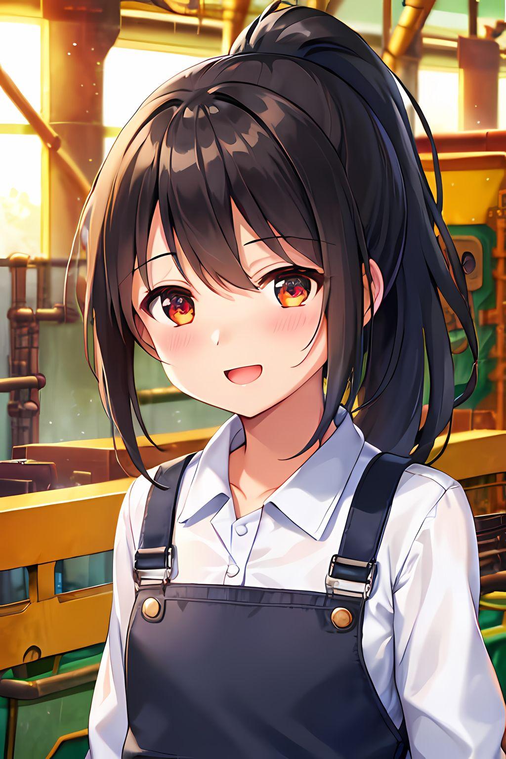 女の子はいつもの黒髪ポニーの茶瞳っ娘(お目々奇麗・マスピ外しVer)