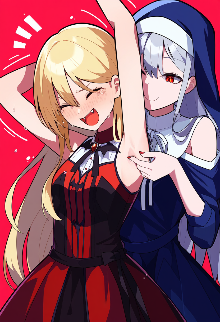 「人間に血をねだる悪い吸血鬼さんはこちょこちょで退治です♪こちょこちょ~」「あははははははははは、あんた本当に退治するきあるの?!」