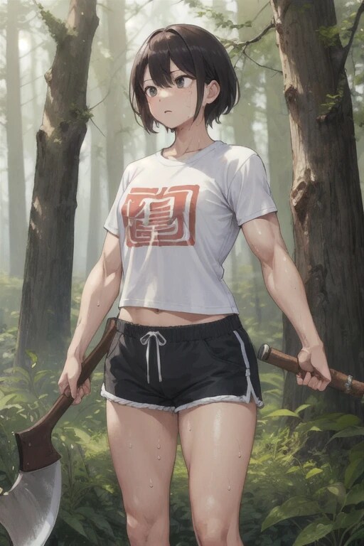 杉の木を切る筋肉質な女性、が欲しかったのですが、男性ですね