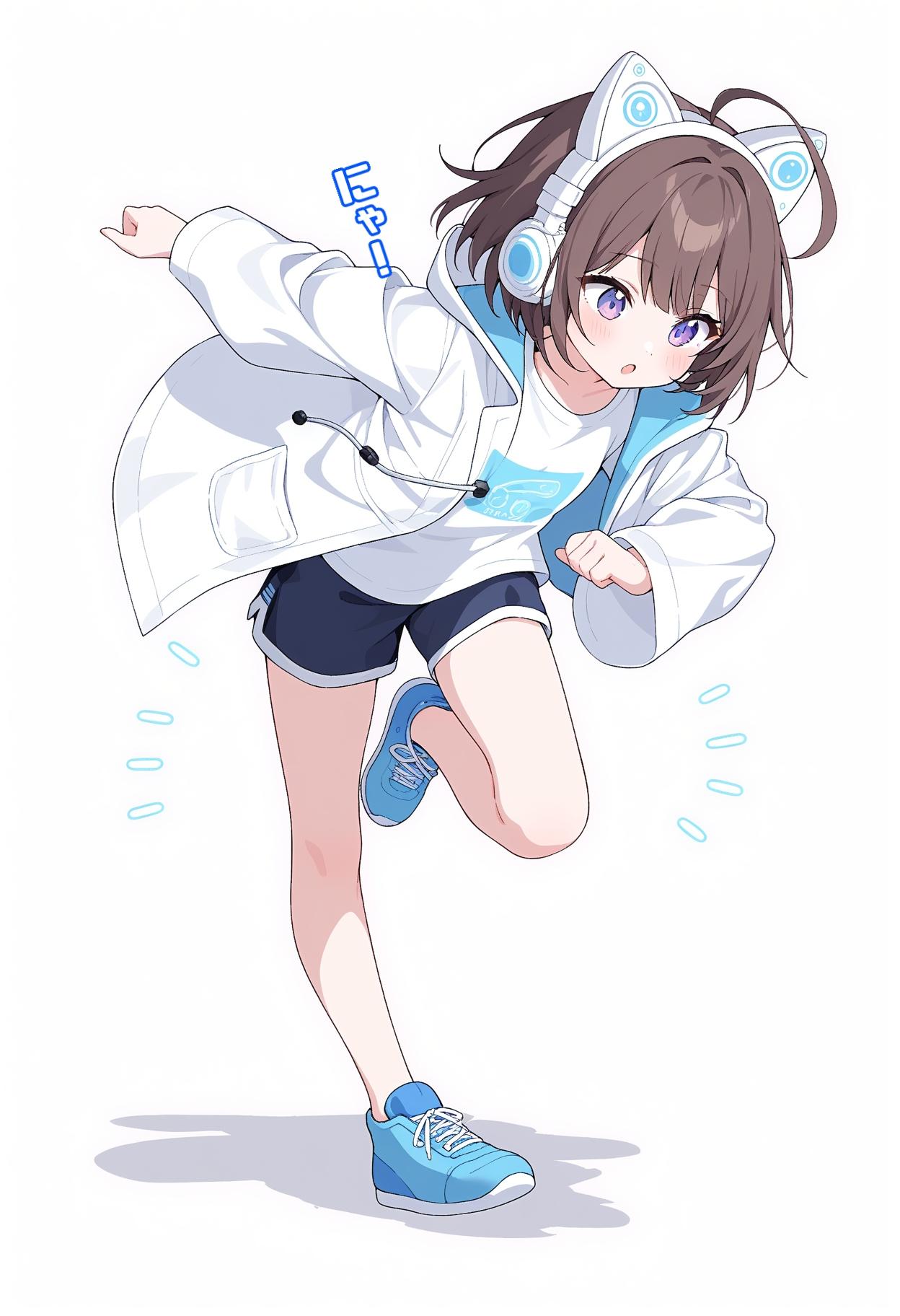 1girl,solo,little,cat ear headphones,