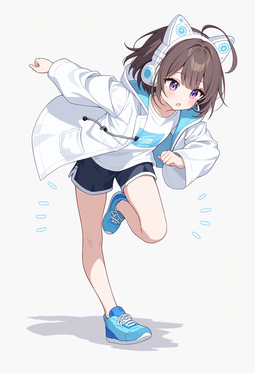 white coat,t-shirts,shorts,dancing,