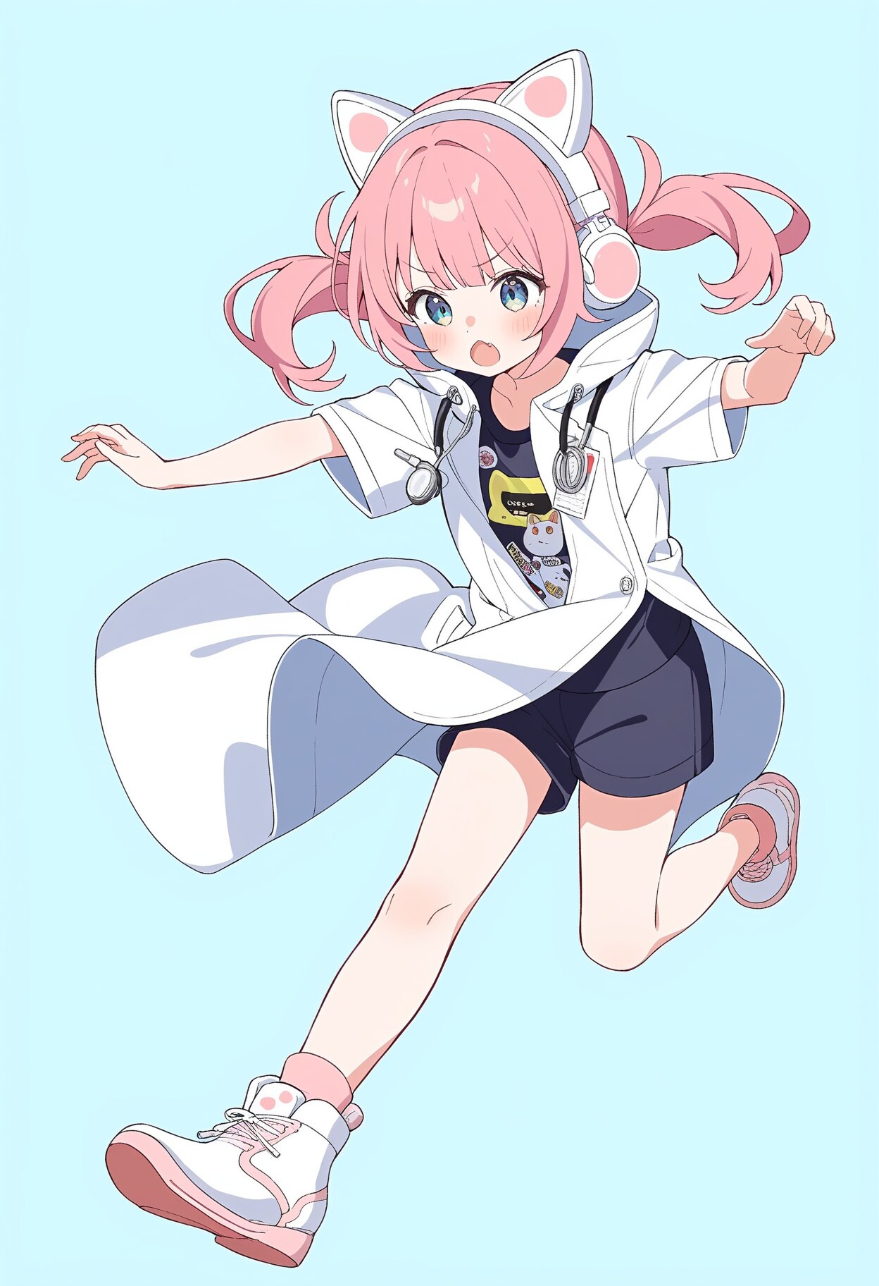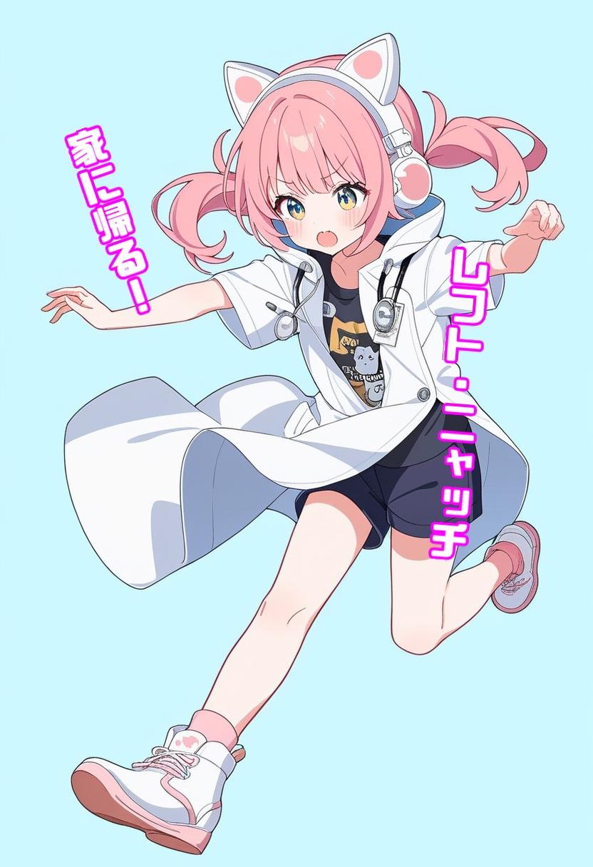 doctor,pink hair,short twintail,(flat chest:0.7),