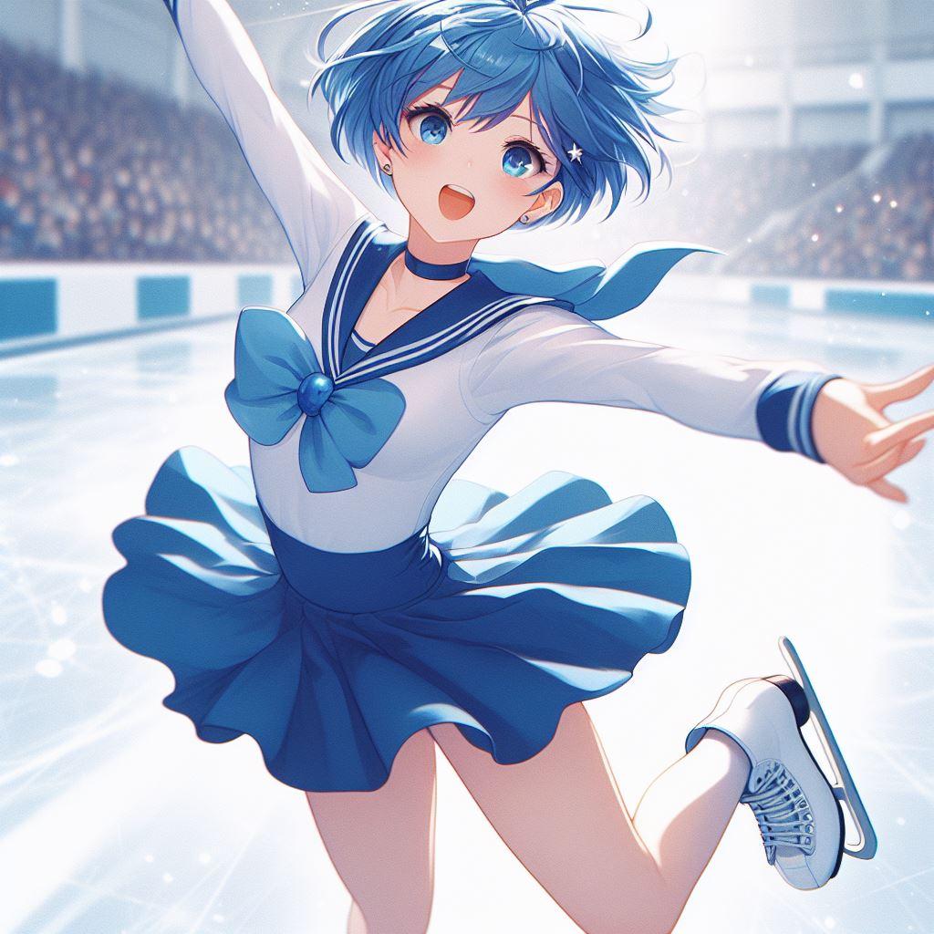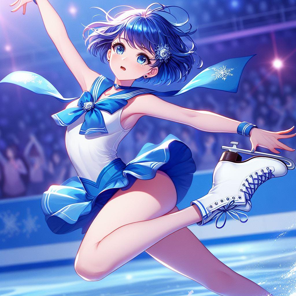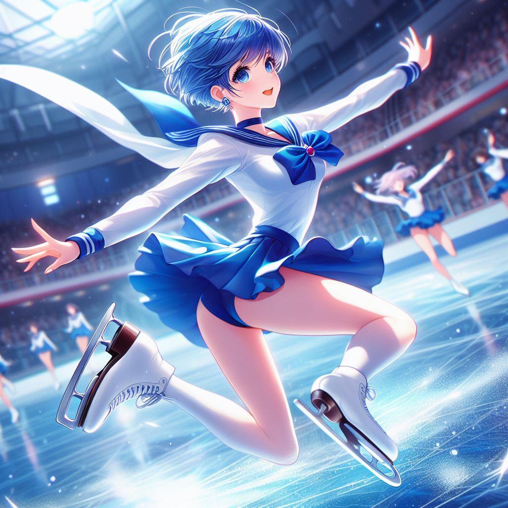 セーラー戦士風女子フィギュアスケート選手のエキシビション (水星)