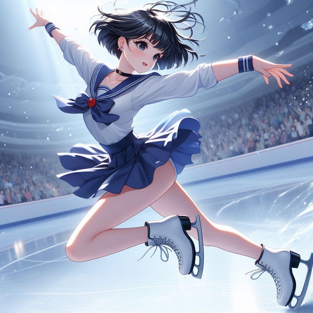 「セーラー戦士風のコスチュームを着た女子フィギュアスケート選手のエキシビション」という設定です。