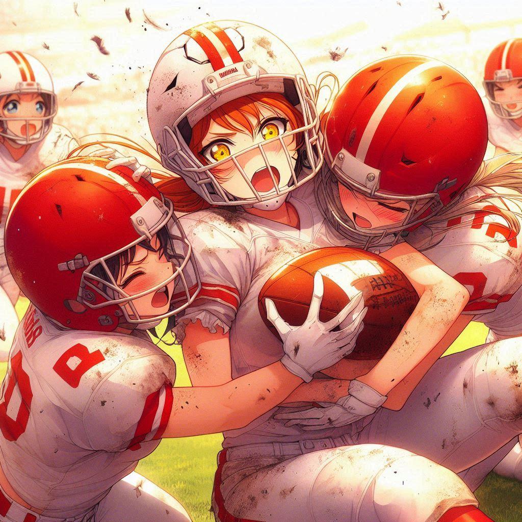 「ちちぷい体育祭」という事で、赤組vs白組の女子のアメフトエキシビションという形で生成しました。