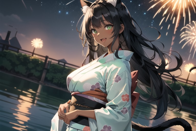 去年と使用モデルは変わりましたが、無事バスにゃんと花火を見れたようです
