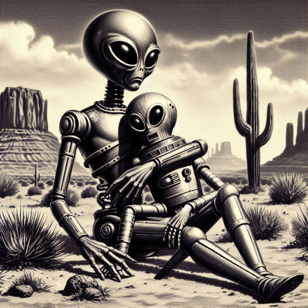 1950年アメリカアリゾナ州砂漠でロボにハグされる宇宙人