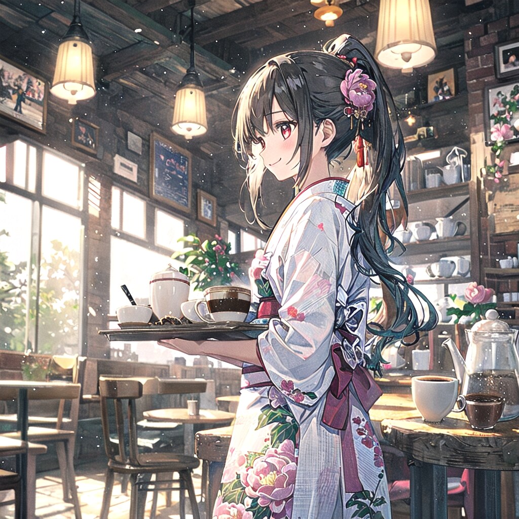 1日バイト体験中の牡丹姫、大分仕事にも慣れてきて笑顔も出てきました✨