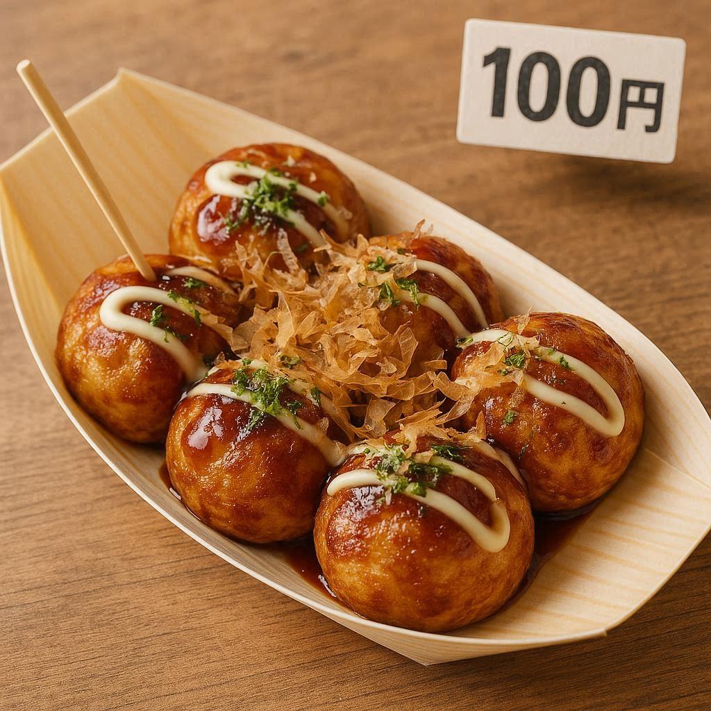 有名な6個100円のたこ焼きも並ばずに買えました。