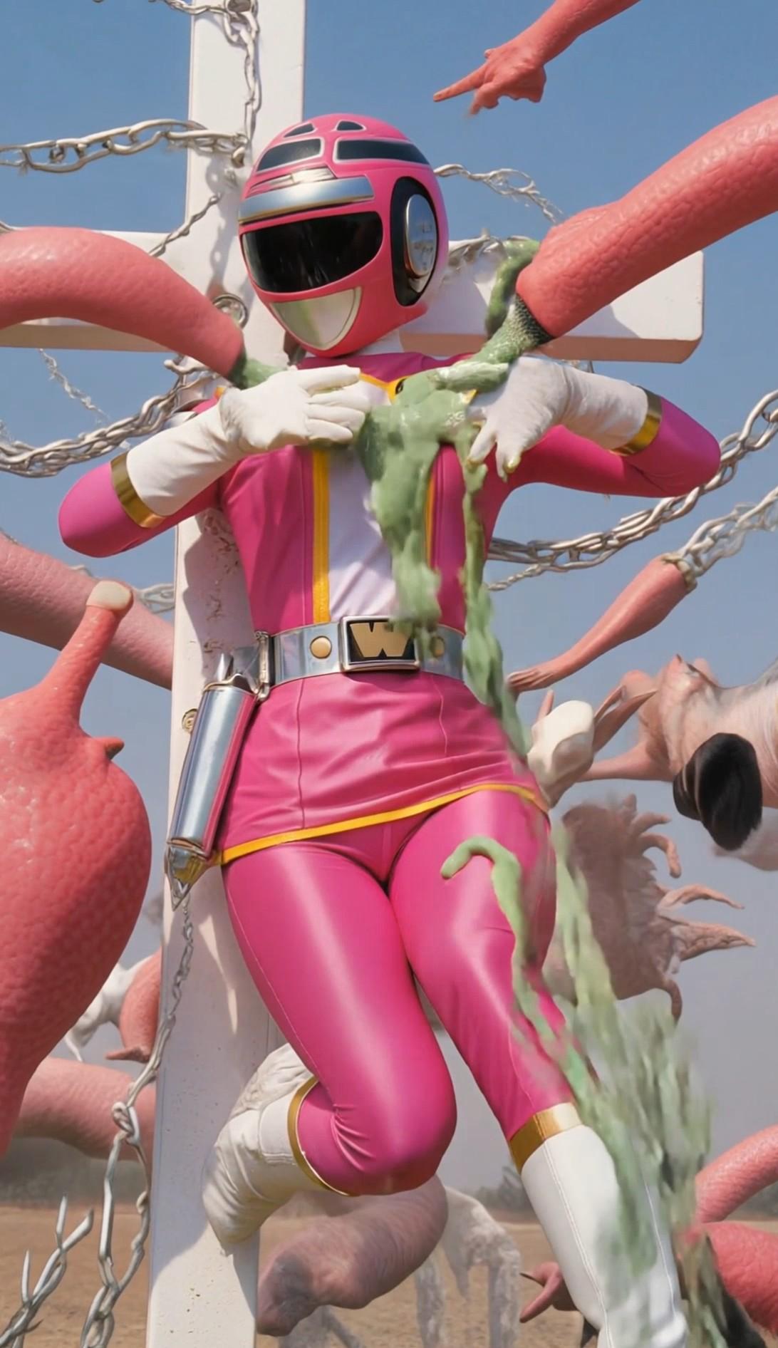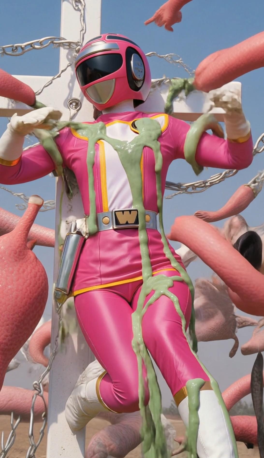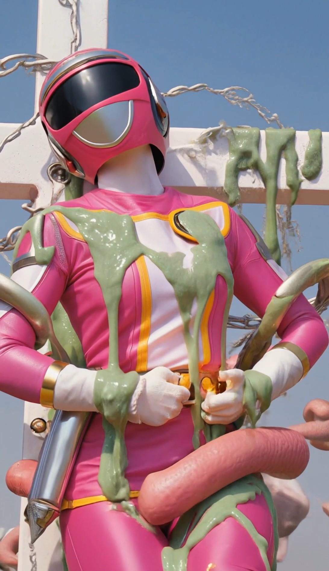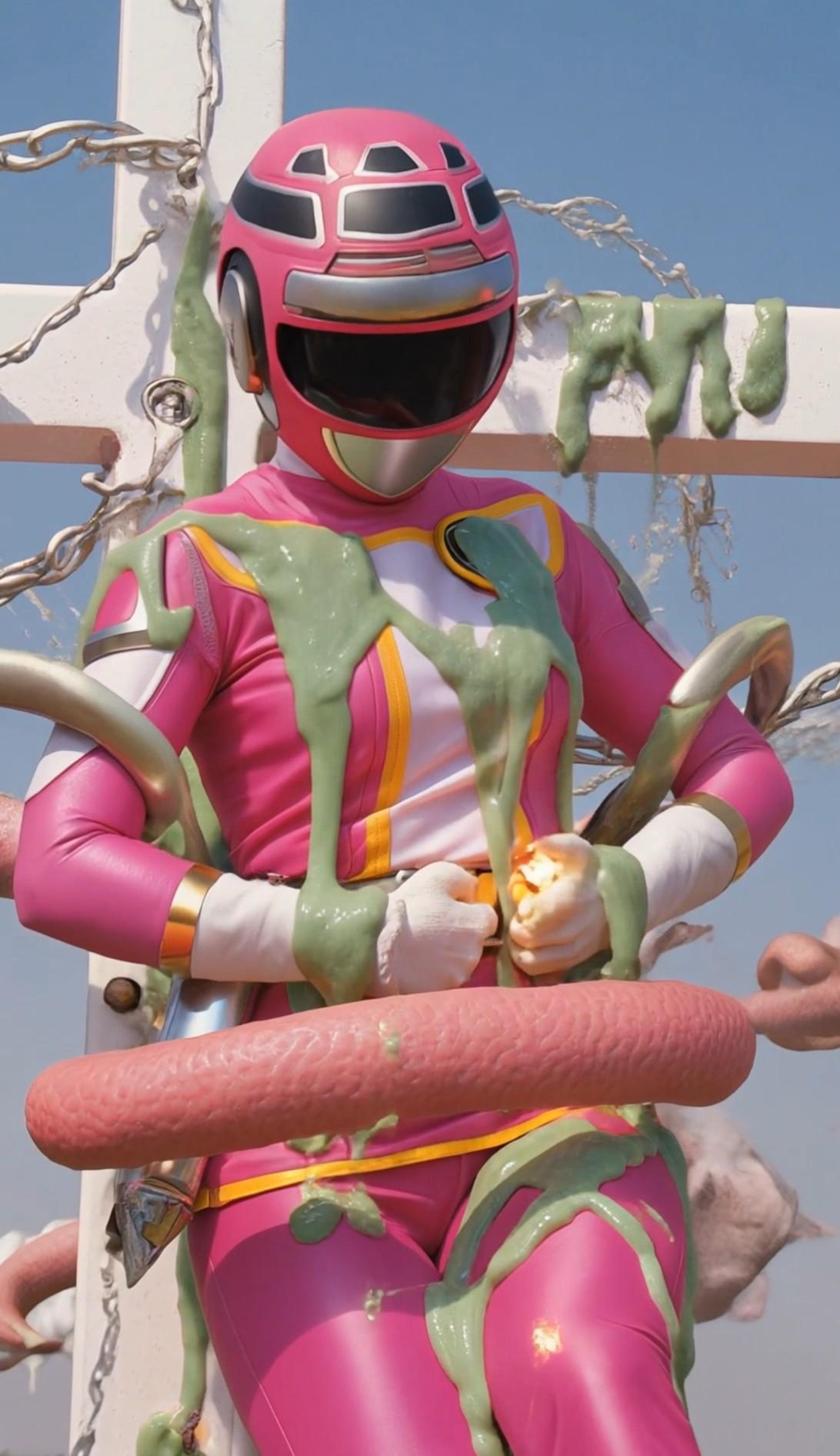 スライムを大量に浴びせられ気持ち悪さから悶える