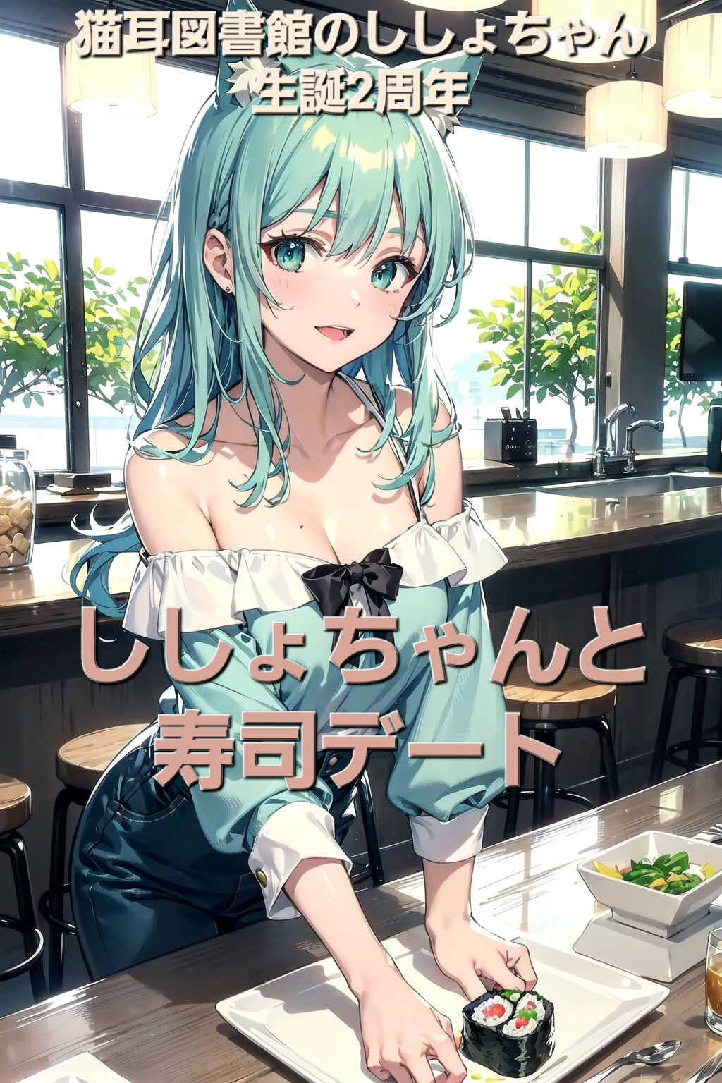 「猫耳図書館のししょちゃん」生誕2周年㊗️ししょちゃんと寿司デート🍣