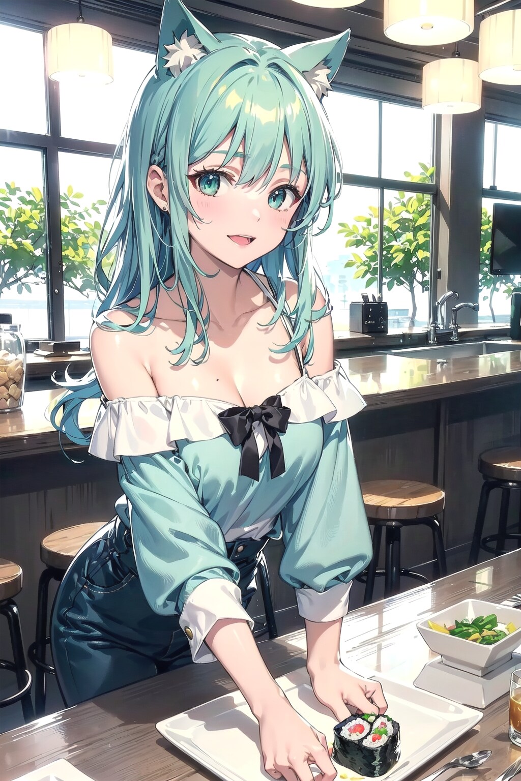🐱✨「わぁ✨オシャレなお寿司屋さんですね🎶私ネコだからお魚好きなの知ってたんですね🎶うふふ💕」