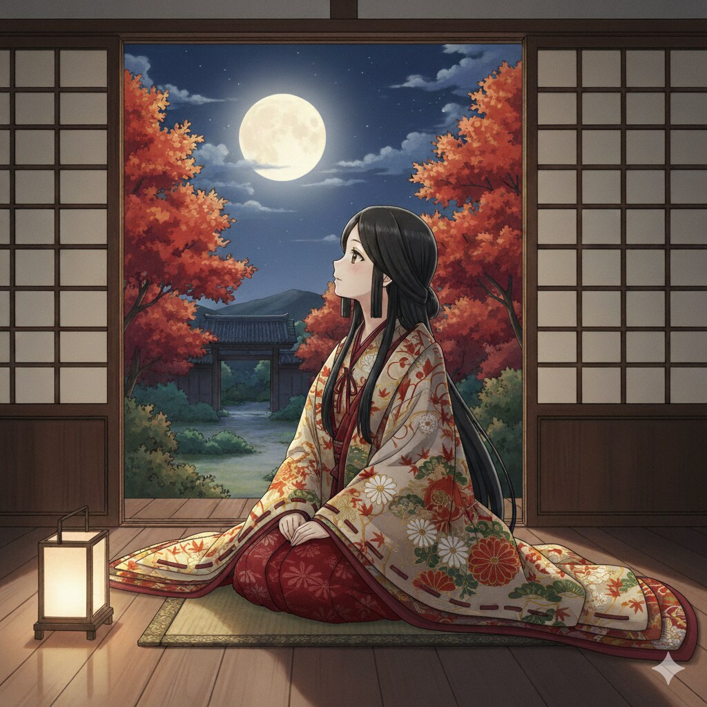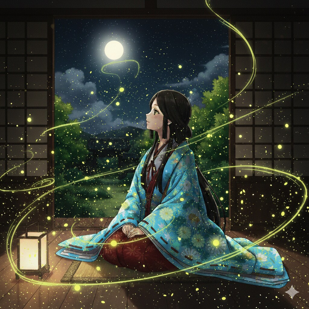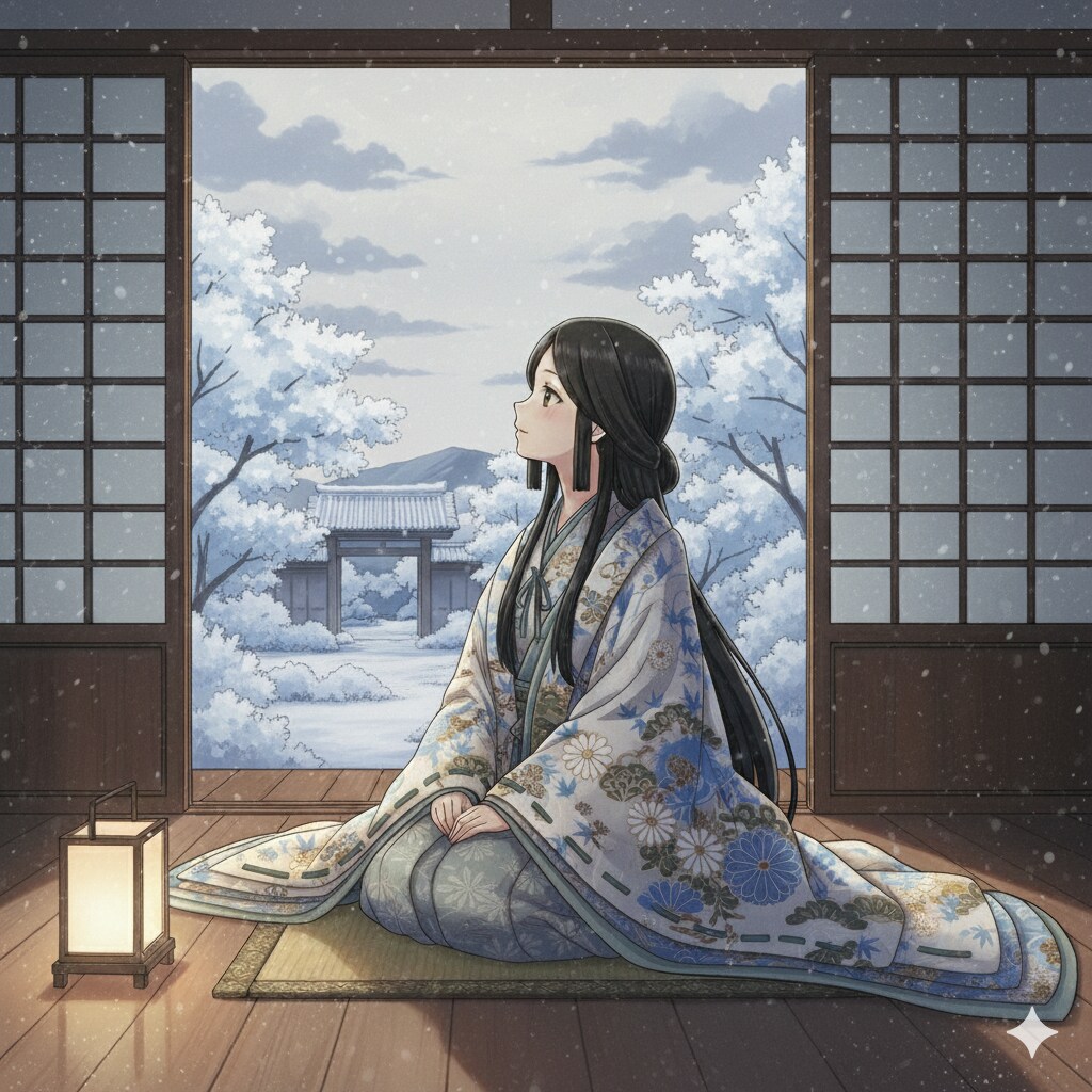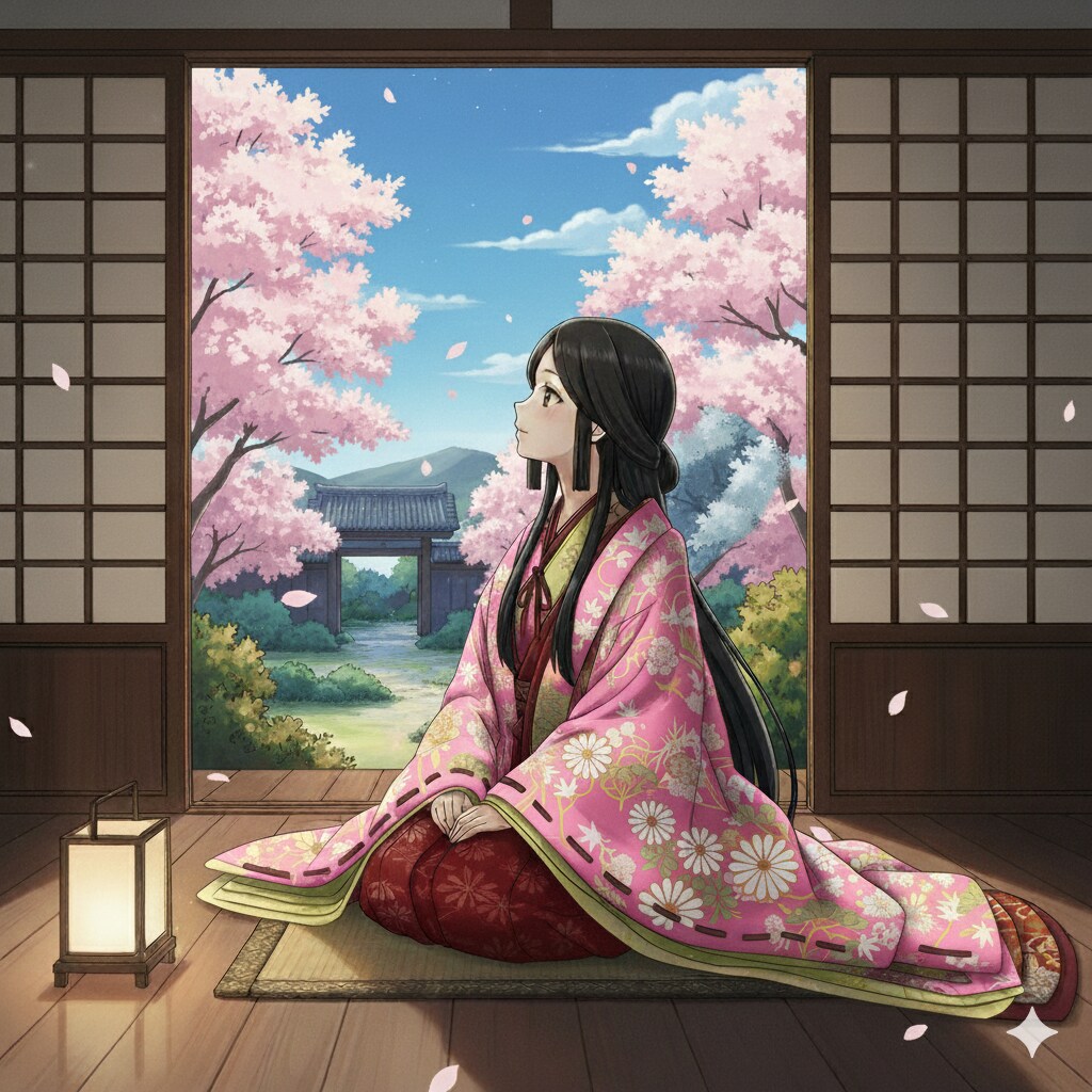 最初に作った試作品。扇無しでもなんとか腰のあたりが違和感なく見える。ひもと裾の縫い目はGeminiちゃんが消してくれなかった。