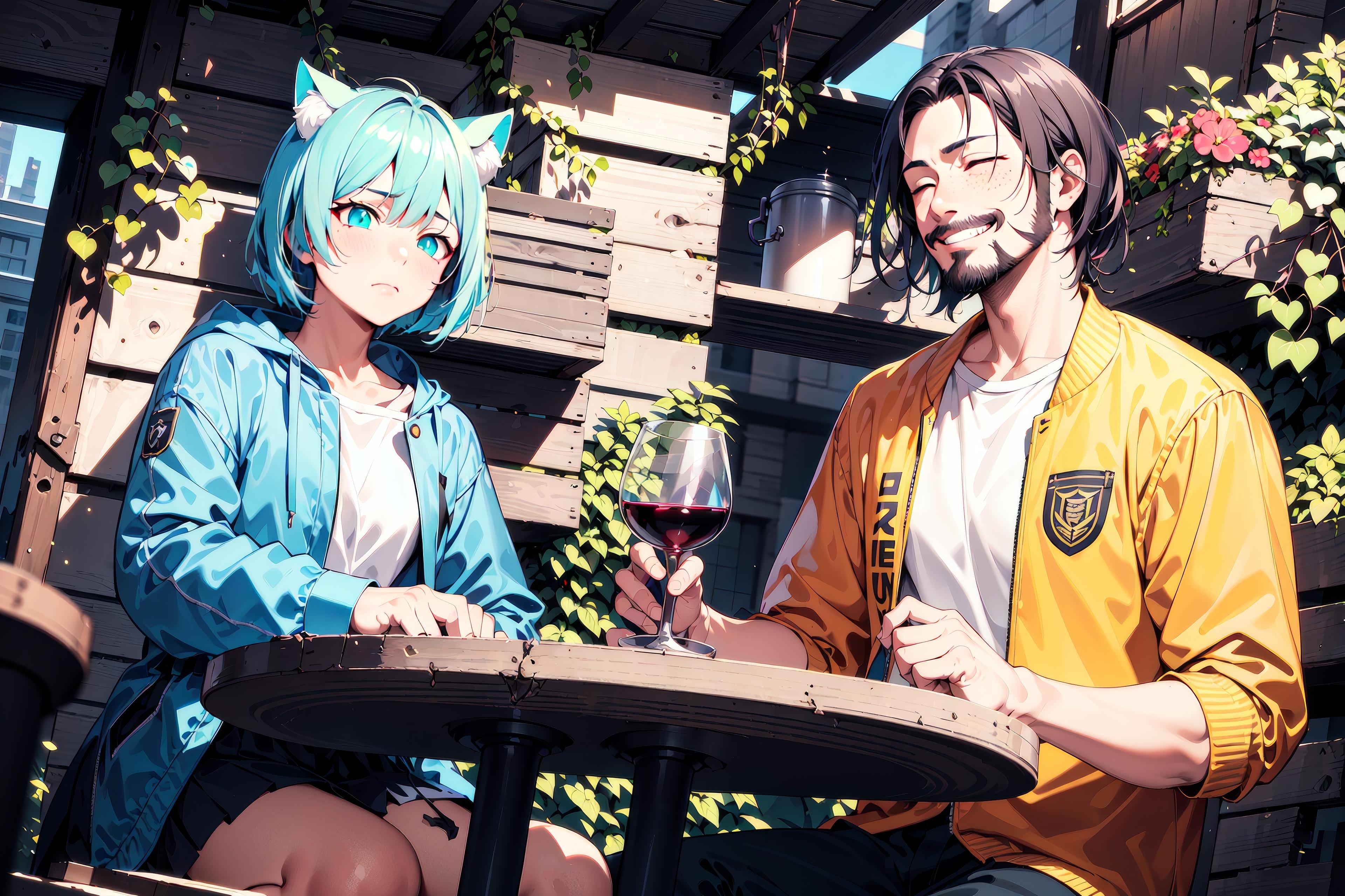 おじさんはニヤリと笑い、「そんな顔をしているからですよ。さぁ、こちらのオープンカフェでお話しましょう」と言い、シアを連れていく。