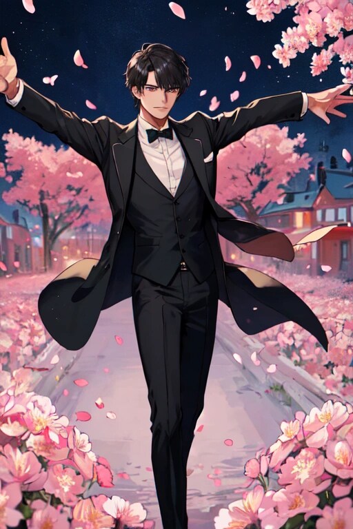 花びらお題ということで、黒髪短髪男性でも生成してみました。