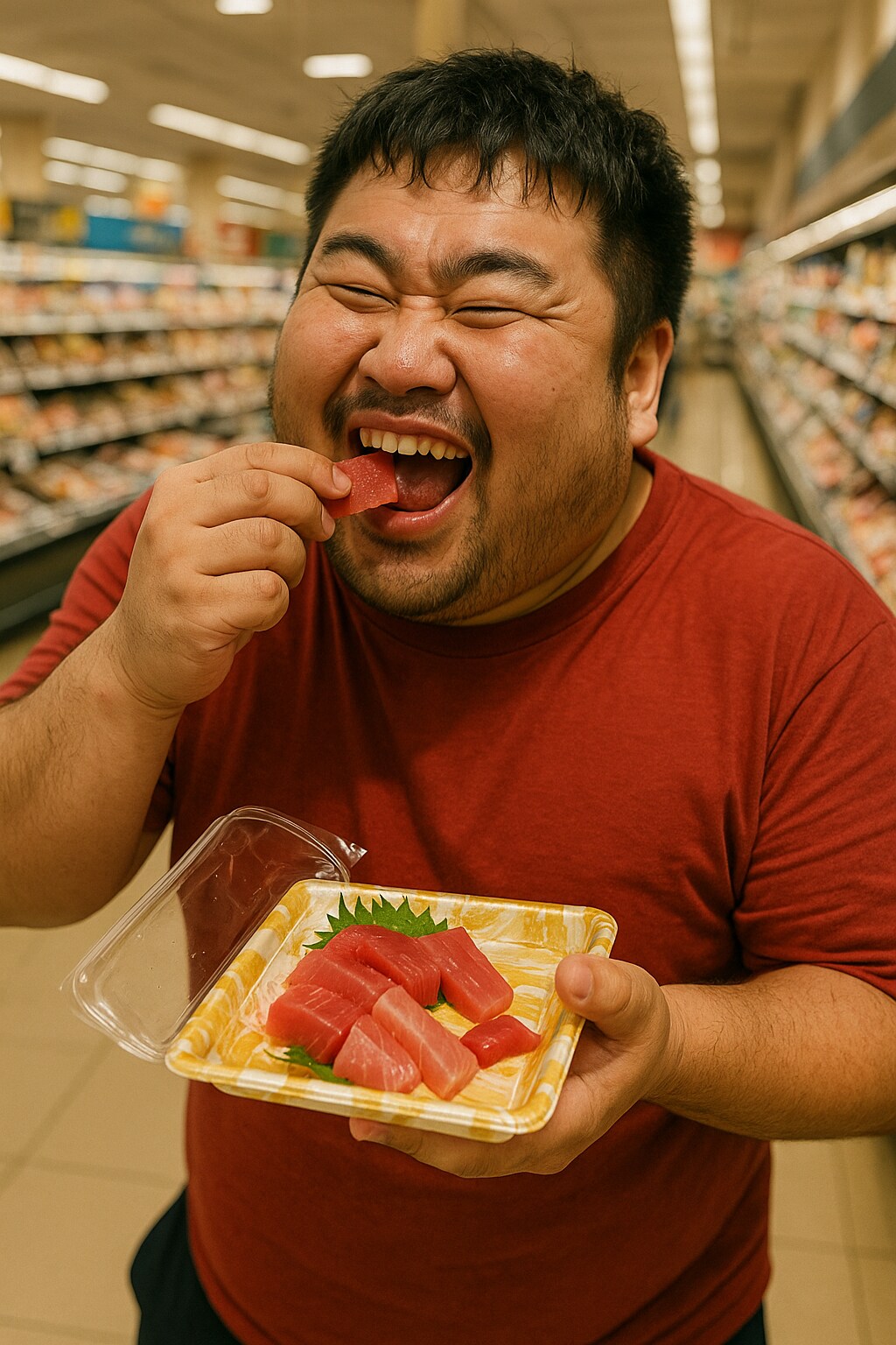 会計前の刺身を食べる