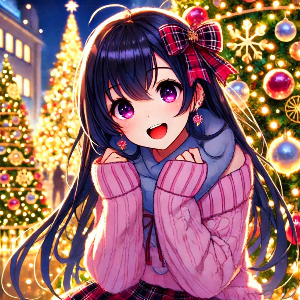 では、クリスマスイブの黒髪ロング少女と、イルミネーションをご覧ください★