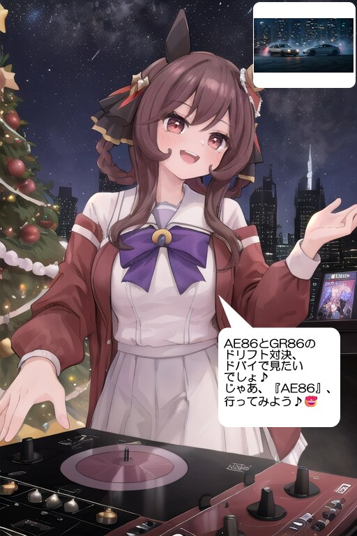 これを記念して、ジェンティルちゃんがクリスマスシーズンにドバイ市内のホテルにあるステージでDJターンテーブルを操りながら、ラップを奏でて観客を喜ばせるシーンがあったら…!!🤩