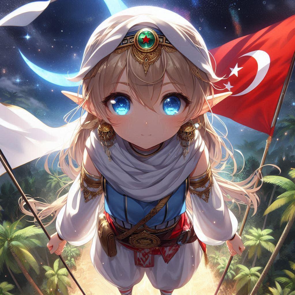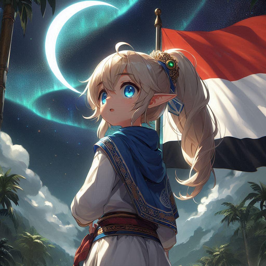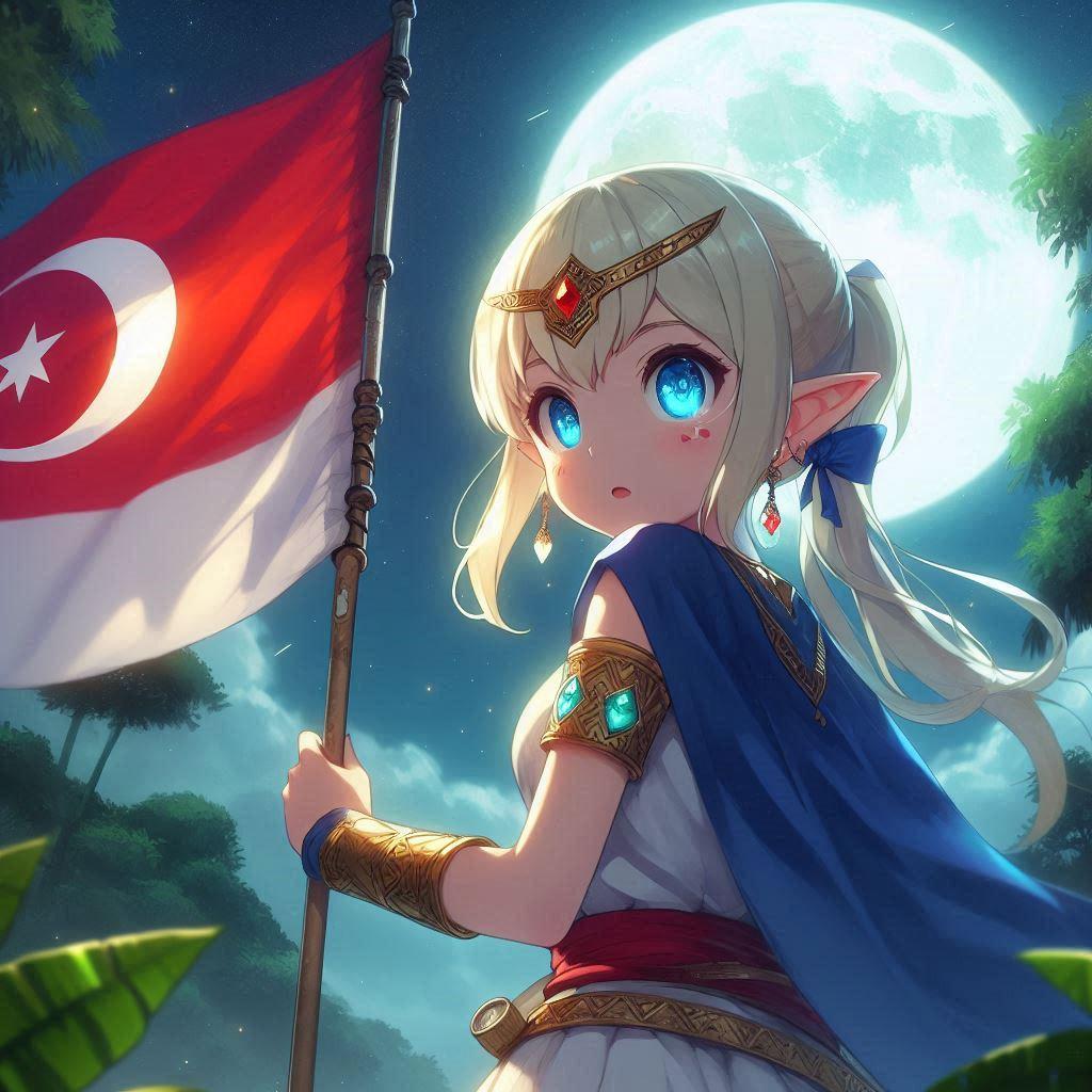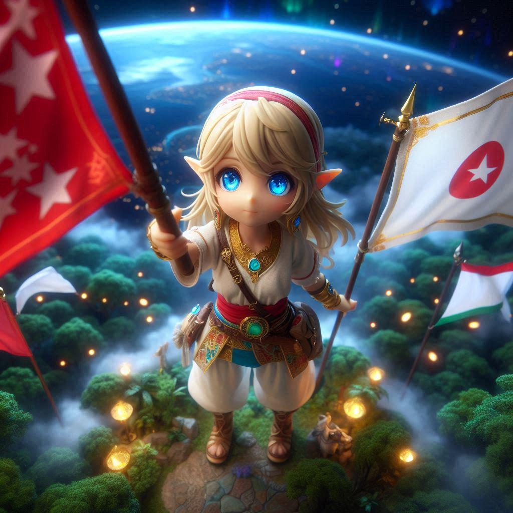 クワンダに促され、シャルロッテが両手にオーラの旗を出す。