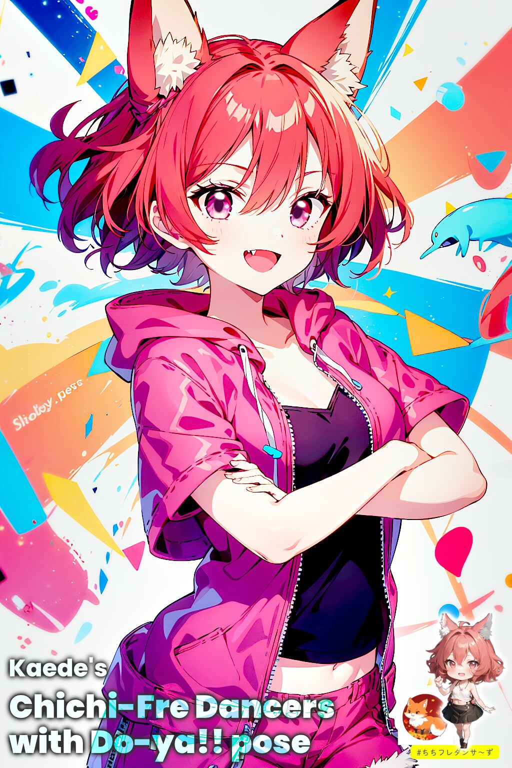 やはり特殊部隊用のヘッドセットではなくてちゃんとヘッドフォンをした絵も創ろう...と思い直して、うちの子代表のカエデに、界隈で流行っているちちフレダンサ~ずにチャレンジしてもらいました。