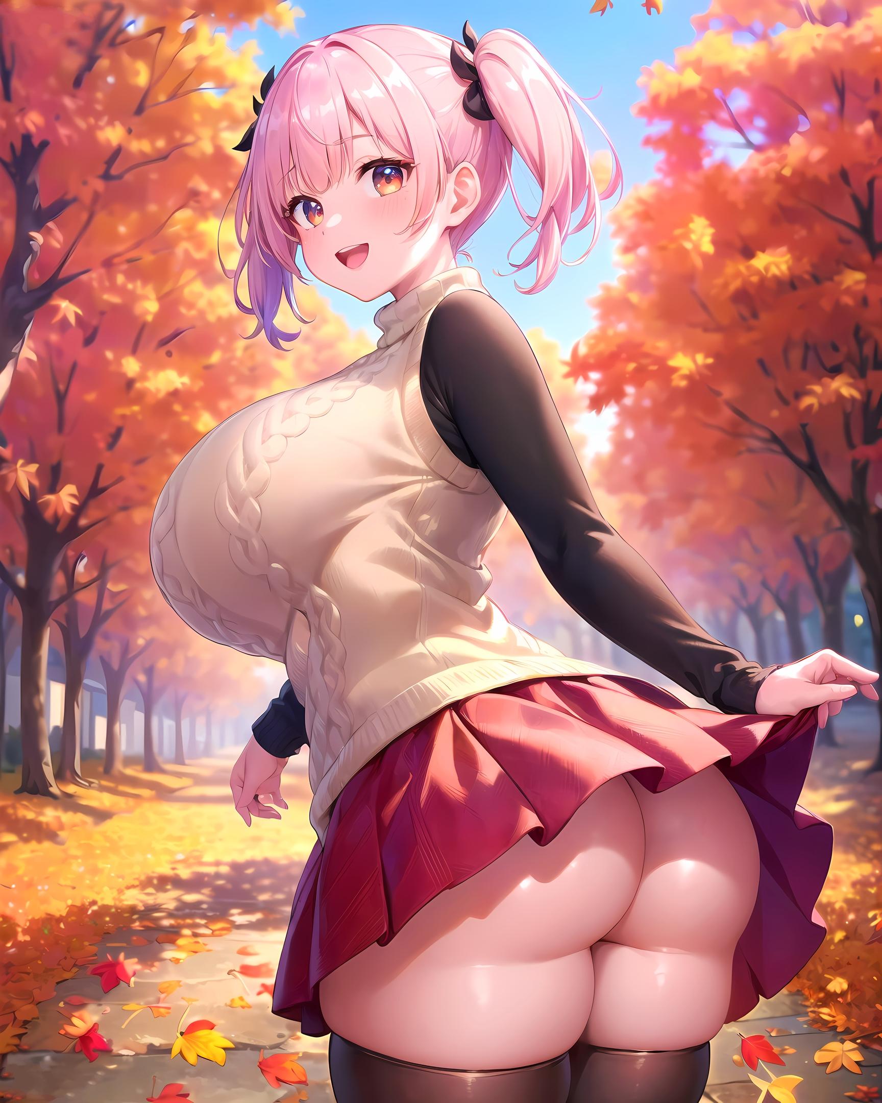 秋の並木とむっちり尻娘